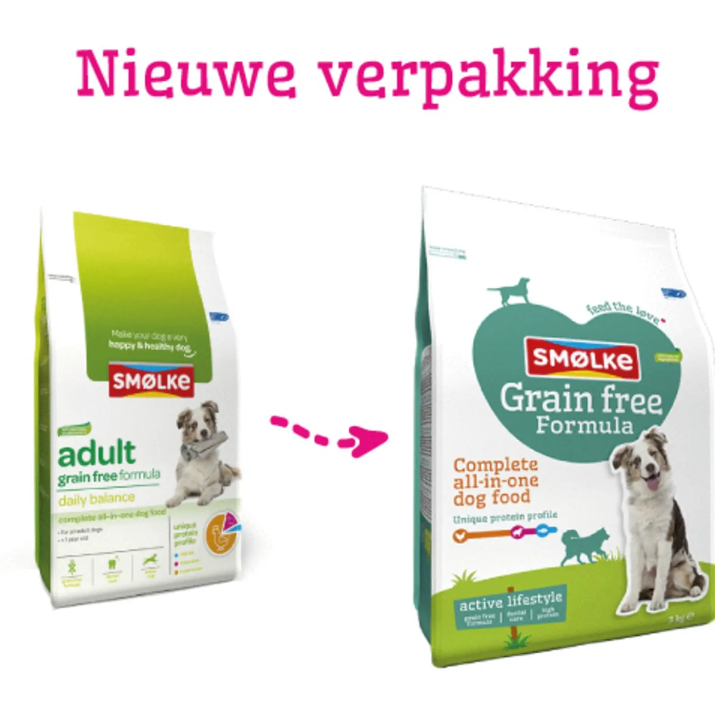 Een complete graanvrije hondenvoeding met natuurlijke ingrediënten wat elke dag weer zorgt voor een blije en tevreden hond, dat is Adult Grain Free Formula hondenvoeding van Smølke. Dit hondenvoer bevat alles wat je hond nodig heeft om iedere dag in balans te zijn. Het voer is geschikt voor honden van alle rassen, vanaf 1 jaar oud.