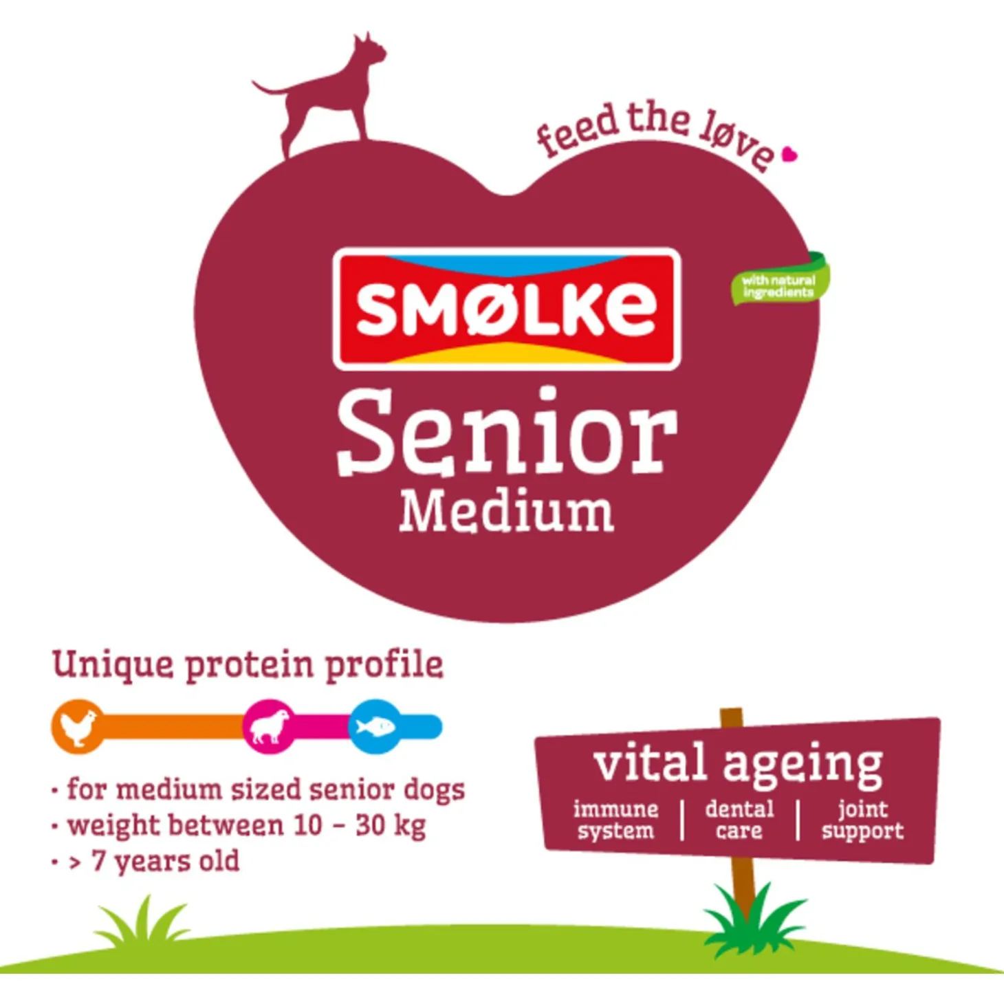 Een complete hondenvoeding met natuurlijke ingrediënten wat elke dag weer zorgt voor een vitale en tevreden hond, dat is Senior Medium hondenvoeding van Smølke. Dit hondenvoer voor je oudere, middelgrote viervoeter (tussen de 10 en 30 kg) bevat alles wat hij nodig heeft om iedere dag in balans te zijn. Het voer is geschikt voor honden vanaf 7 jaar oud.