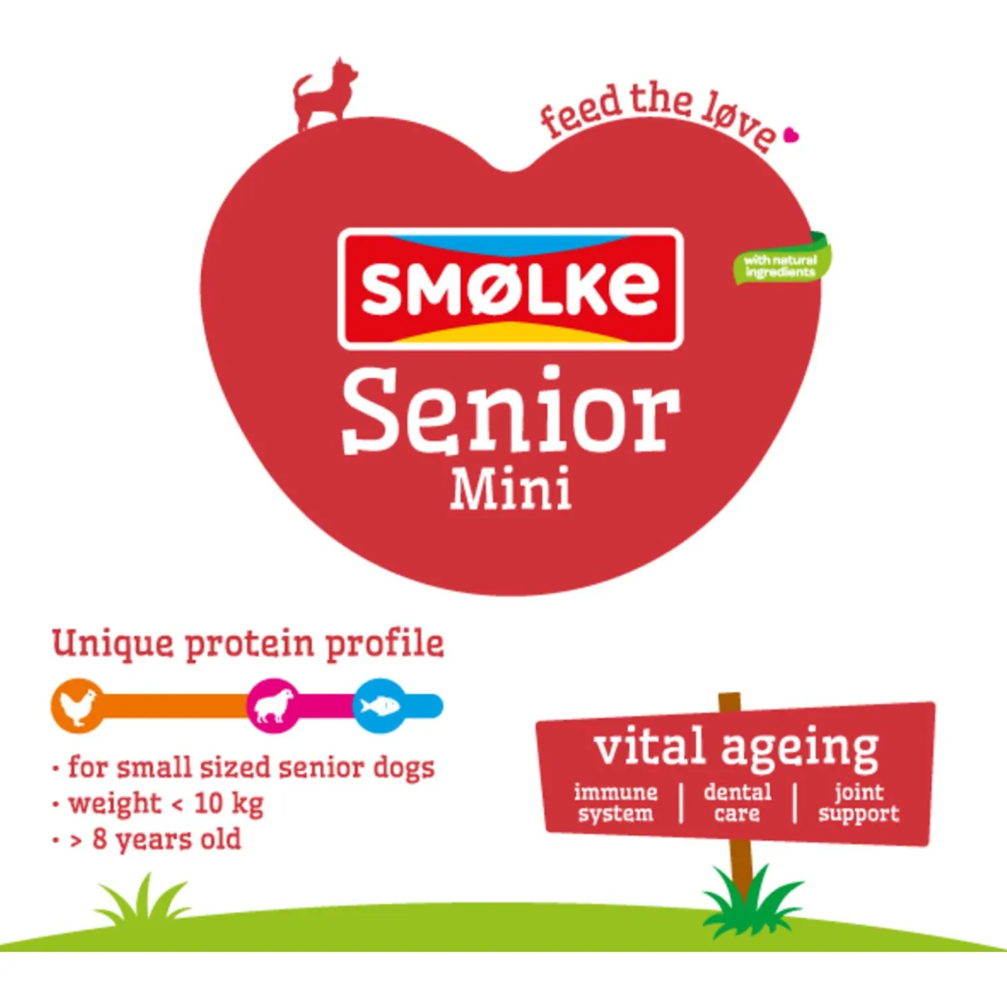 Een complete hondenvoeding met natuurlijke ingrediënten wat elke dag weer zorgt voor een vitale en tevreden hond, dat is Senior Mini hondenvoeding van Smølke. Dit hondenvoer voor je oudere, kleine viervoeter (lichter dan 10 kg) bevat alles wat hij nodig heeft om iedere dag in balans te zijn. Het voer is geschikt voor honden vanaf 8 jaar oud.