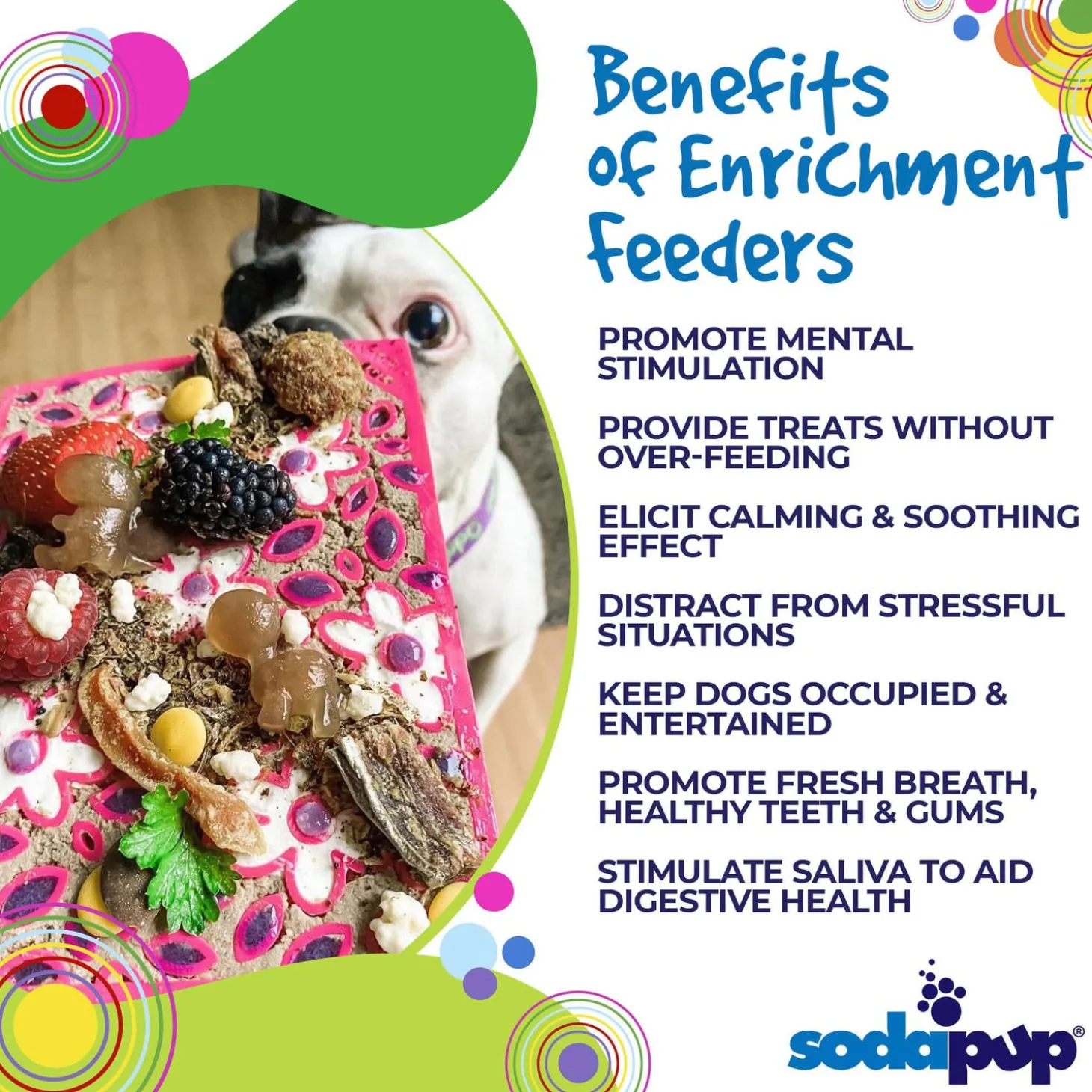 - Verdeel zacht voedsel in het likmatpatroon om een langdurige verrijkende likuitdaging voor uw honden en katten te creëren.