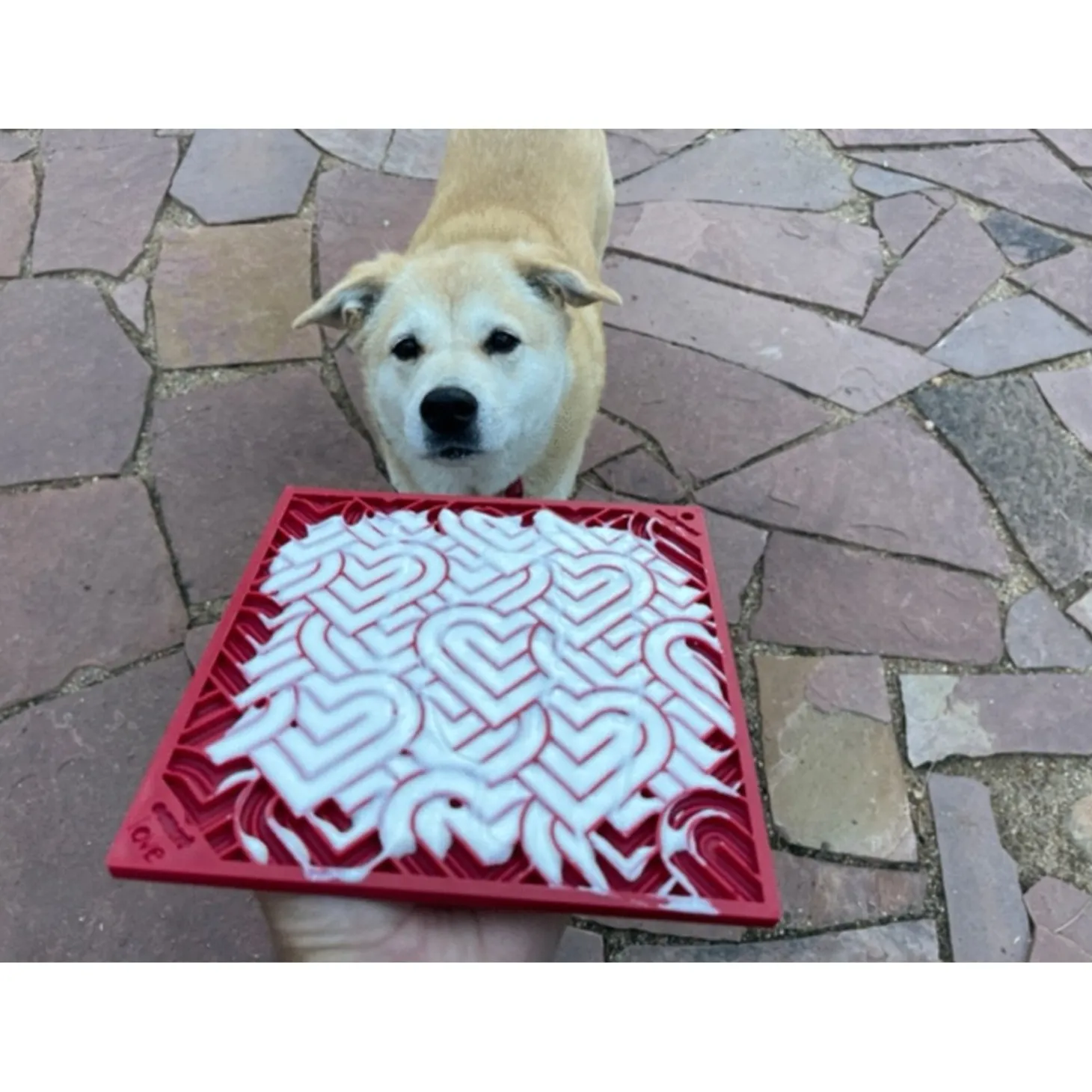 - Verspreid zacht voedsel in het likmatpatroon voor een langdurige verrijkingsuitdaging bij het likken voor uw honden en katten.