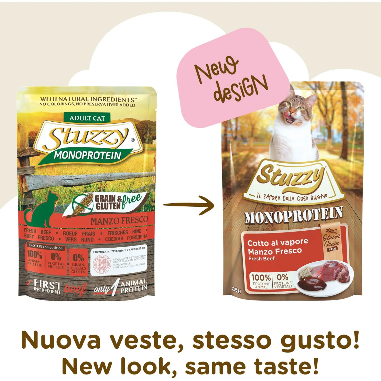 Natvoer is een belangrijke onderdeel in het dagelijkse dieet van je kat, je doet je kat een plezier door haar een voeding te geven van hoge kwaliteit die ook nog eens heel smakelijk is. Sommige katten zijn echter gevoelig voor bepaalde eiwitten en kunnen baat hebben bij een voeding met maar 1 dierlijk eiwit, zoals deze Monoprotein Maaltijdzakjes van Stuzzy. Het natvoer is daarnaast ook geheel graan- en glutenvrij.
