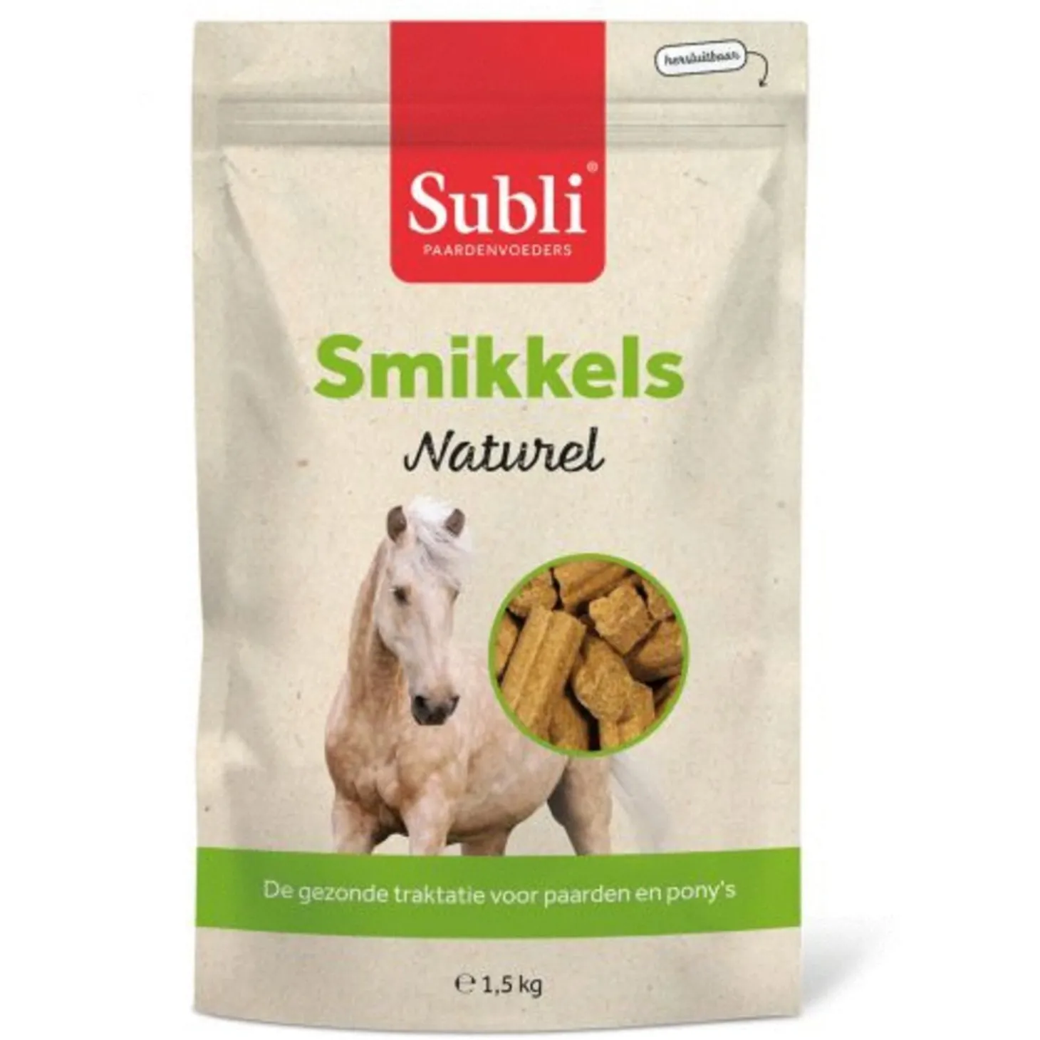 Je gunt je paard een verantwoorde beloning, zonder poespas. Subli Smikkels Naturel zijn gezonde, natuurlijke paardensnoepjes met een neutrale smaak, ideaal voor gevoelige paarden of pony’s. Dankzij het lage suiker- en zetmeelgehalte zijn ze licht verteerbaar en veilig voor dagelijks gebruik. Een pure traktatie die past bij elk rantsoen.