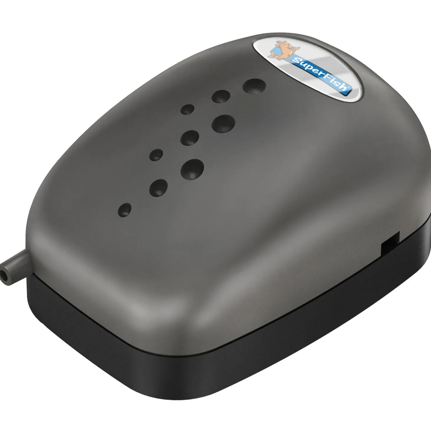 Een aquarium kan niet zonder zuurstof. De Air-Flow Mini van Superfish is een veilige luchtpomp voor in je aquarium en zal zorgen voor zuurstofrijk water. De luchtpomp wordt geleverd met een gratis vervangingsmembraam voor probleemloos en langdurig gebruik. De Air-Flow reeks heeft verschillende modellen met 1 tot 4 uitgangen zodat eventueel meerdere aquaria of decoratie ornamenten van lucht kunnen worden voorzien. De Air-Flow Mini heeft 1 uitgang. Let op: de pomp wordt zonder luchtslang geleverd!