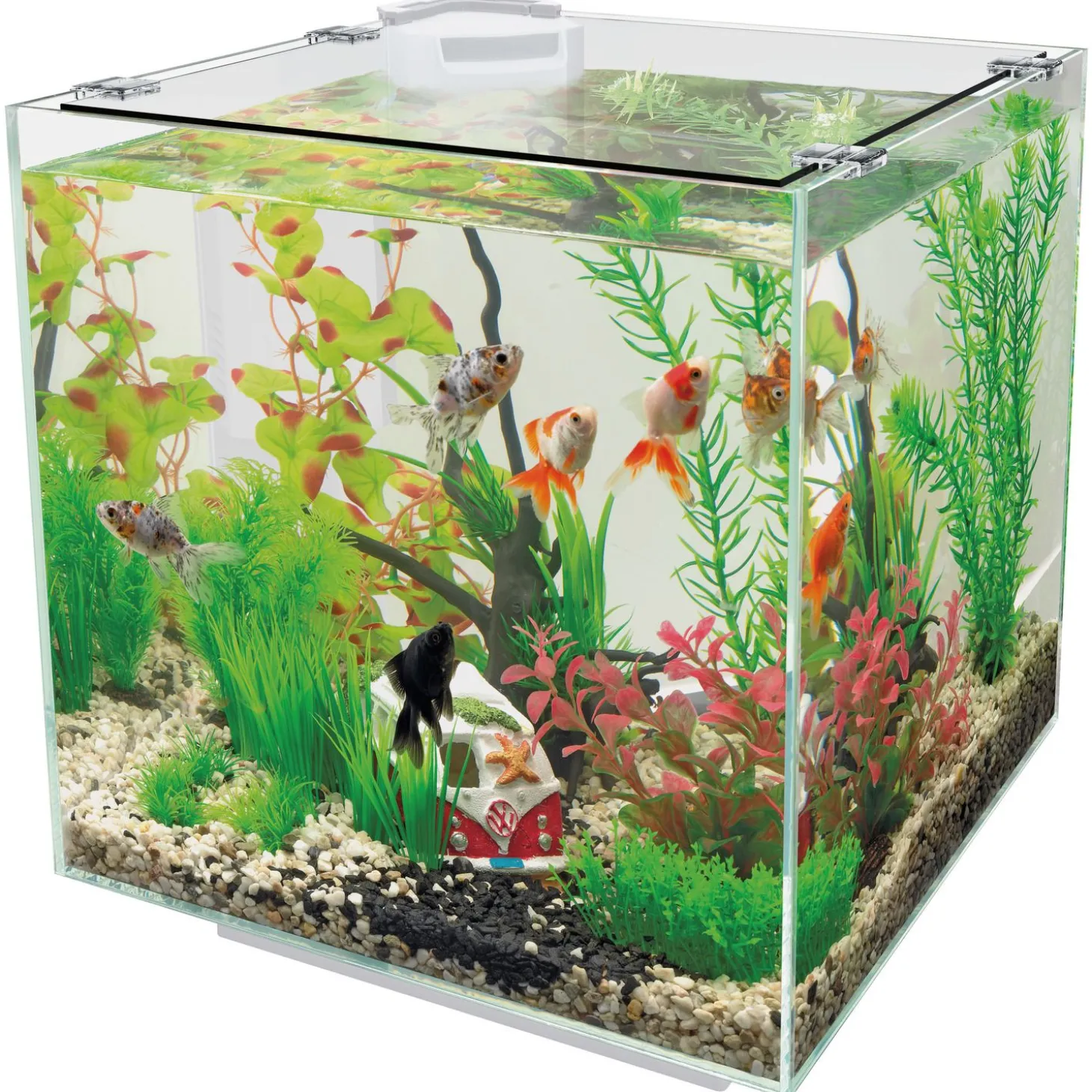 - Design aquarium met handig ingebouwd biologisch filter met Crystal Clear cartridge zorgt voor schoon en gezond water.