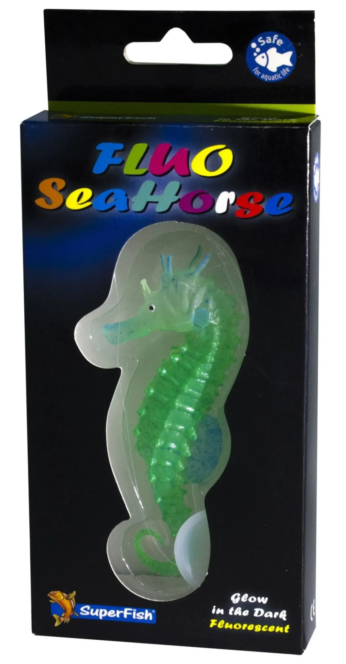 De Fluo Seahorse van Superfish is een fluorescerend ornament voor in je aquarium. Dit siliconen zeepaardje zorgt gegarandeerd voor een unieke twist in je aquarium. Met een zuignap is de vis vast te maken aan het aquarium.