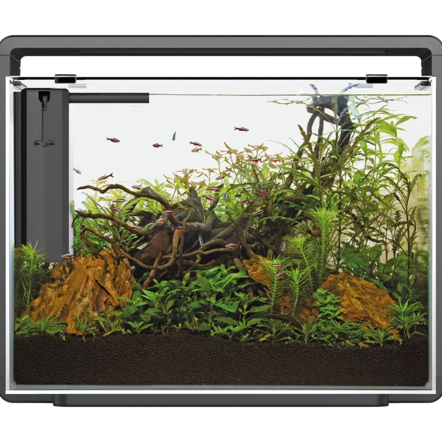 - Inhoud 80 liter, geschikt voor koudwater en tropische vissen, dankzij de geïntegreerde ruimte voor optionele verwarmer. verkrijgbaar in de kleuren wit en zwart, vervangcartridges zijn verkrijgbaar bij uw dealer.
