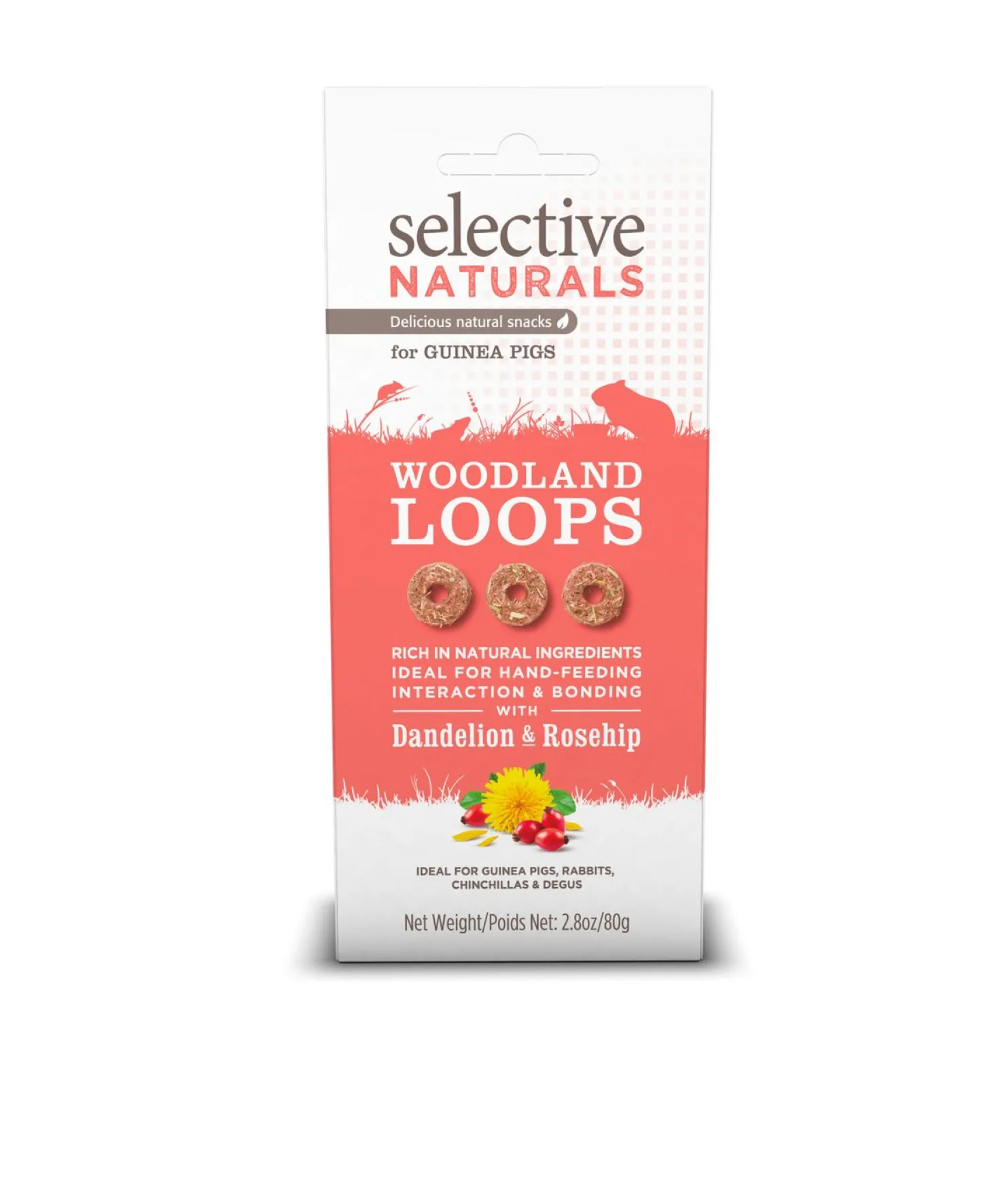 Naast het dagelijkse hooi en de voederkorrels mag je konijn of cavia ook weleens verwend worden met een lekker tussendoortje. Selective Naturals Woodland Loops van Supreme zijn een voedzame traktatie voor konijnen en cavia’s. De snacks bevatten veel vezels en geen toegevoegde suikers. De snoepjes zijn geschikt voor konijnen en cavia’s, maar kunnen ook gegeven worden aan je chinchilla of degoe.