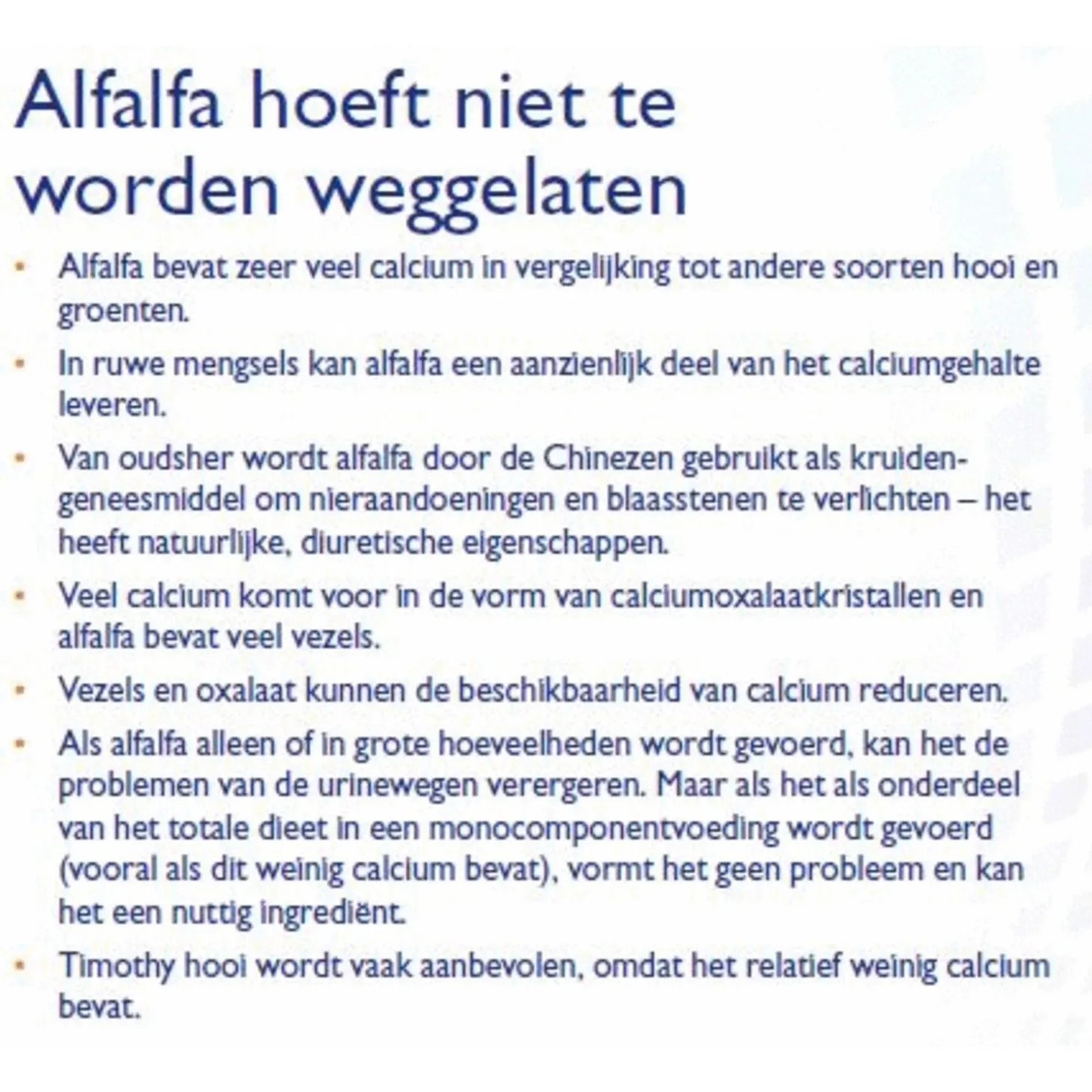 - Laag calciumgehalte (0,5%)