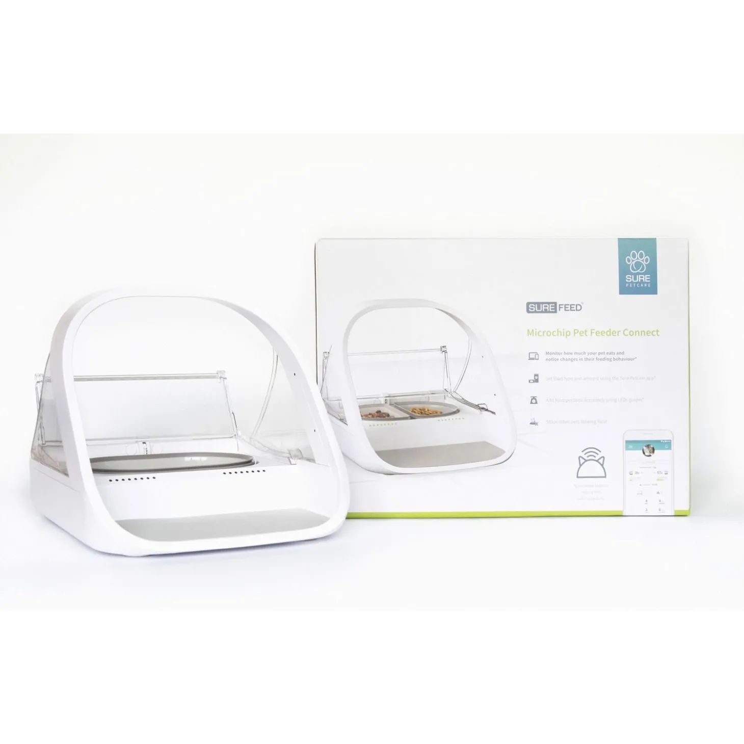 De Voerbak Connect heeft een app (Sure Petcare App) die je kunt downloaden voor je mobiele telefoon, met deze app kan je vervolgens contact maken met de Hub van Sure Petcare. Met deze app kan je in de gaten houden hoeveel en hoe vaak je kat eet. Zo kan je veranderingen in het eetpatroon snel opmerken. Ook heeft deze variant geïntegreerde weegschalen zodat je het voer tot 1 gram nauwkeurig kunt afwegen. De LED-lampjes geven aan wanneer de juiste hoeveelheid in het bakje zit.