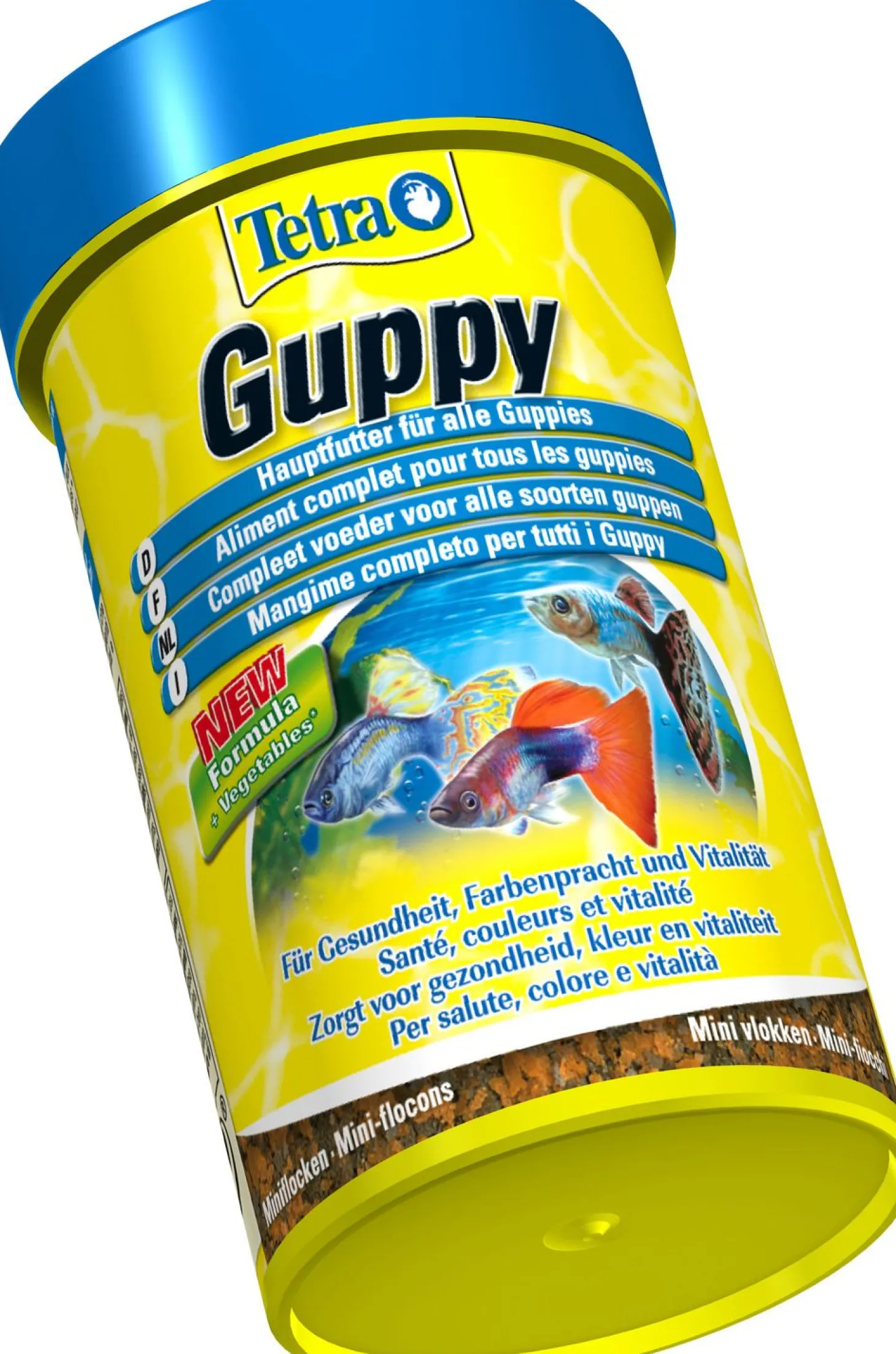 De Guppy Visvoer Vlokken van Tetra is een zeer voedzame hoofdvoeding in de vorm van minivlokken voor guppy’s en andere levendbarende tandkarpers zoals platy’s, molly’s en zwaarddragers. Je kan deze uitgebalanceerde voeding dagelijks voeren. De voeding is rijk aan plantaardige bestandsdelen met toegevoegde mineralen. De mini vlokken hebben een hoge en verbeterde acceptatie en dragen bij aan een gezonde groei, bevordert het immuunsysteem en mooiere kleuren. De minivlokken drijven kort op het wateroppervlak voordat ze zinken. Het is daardoor ook geschikt voor vissen die zich in de bovenste waterlaag voeden.