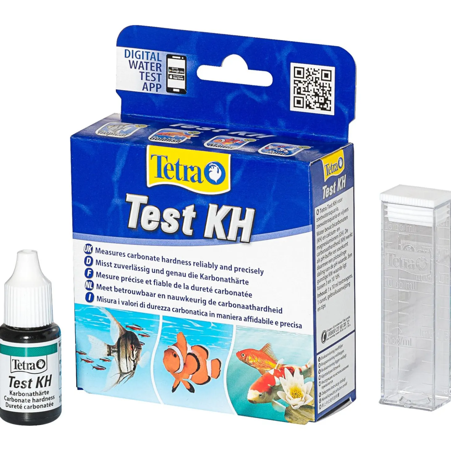 Het controleren van de waterwaarden is van groot belang om een gezond aquarium te houden. De Test KH van Tetra meet betrouwbaar en nauwkeurig de carbonaathardheid. Dit product heeft een grote reikwijdte en zorgt voor stabiliteit op lang termijn. Geschikt voor zoet- en zeewateraquaria.
