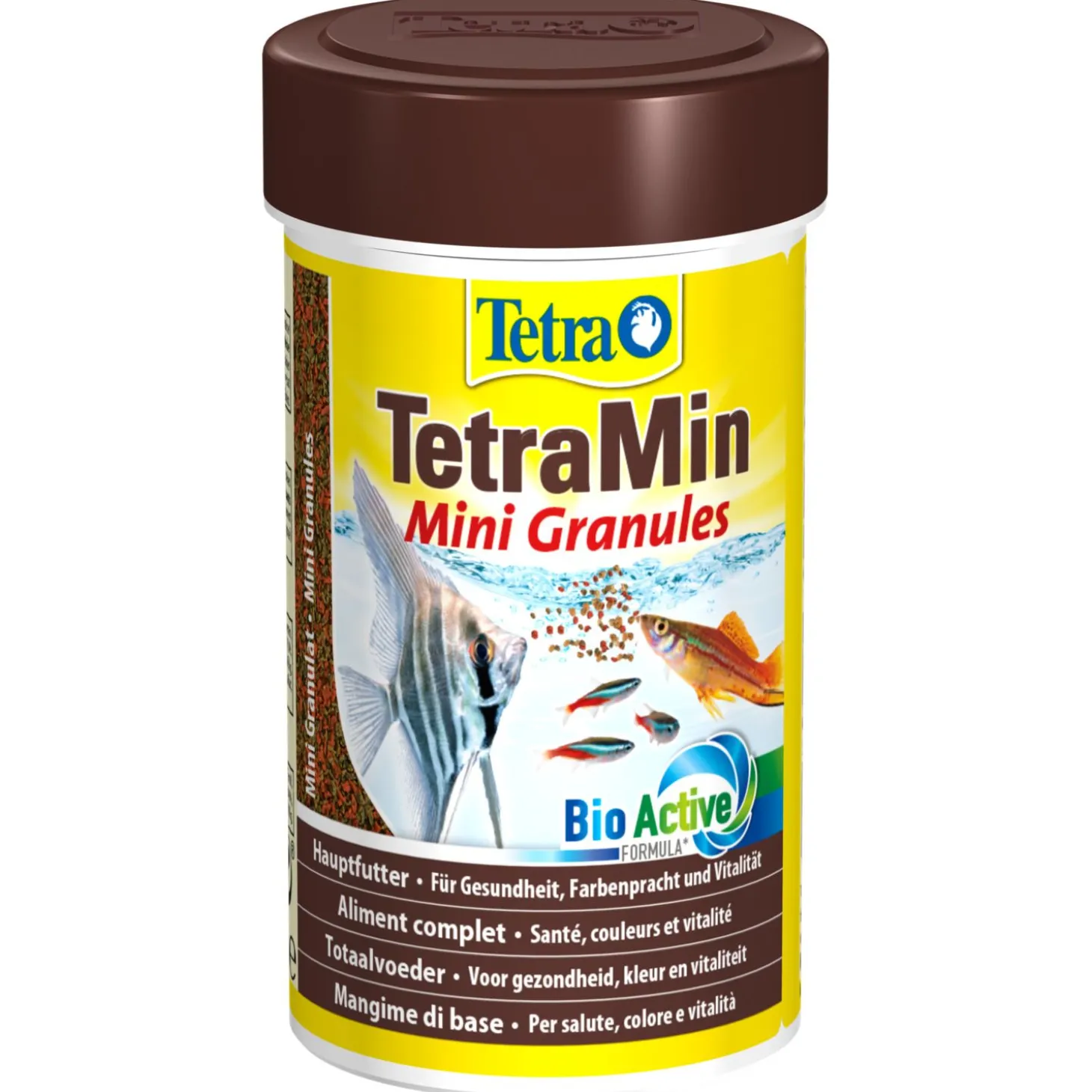 De TetraMin Mini Granules van Tetra is een hoofdvoeding in de vorm van langzaam zinkende mini korrels. Een voeding opgebouwd uit hoogwaardige en functionele voedingsstoffen die geschikt zijn voor de dagelijkse voeding van kleinere siervissen. De korrels bestaan uit meer dan 40 hoogwaardige grondstoffen. De BioActive-formule draagt bij aan een gezond immuunsysteem en de toegevoegde prebiotica ondersteunt de lichaamsfuncties. De korrels worden snel zacht en zinken dan langzaam naar de bodem; ideaal voor vissen die zich in het midden van het aquarium voeden.