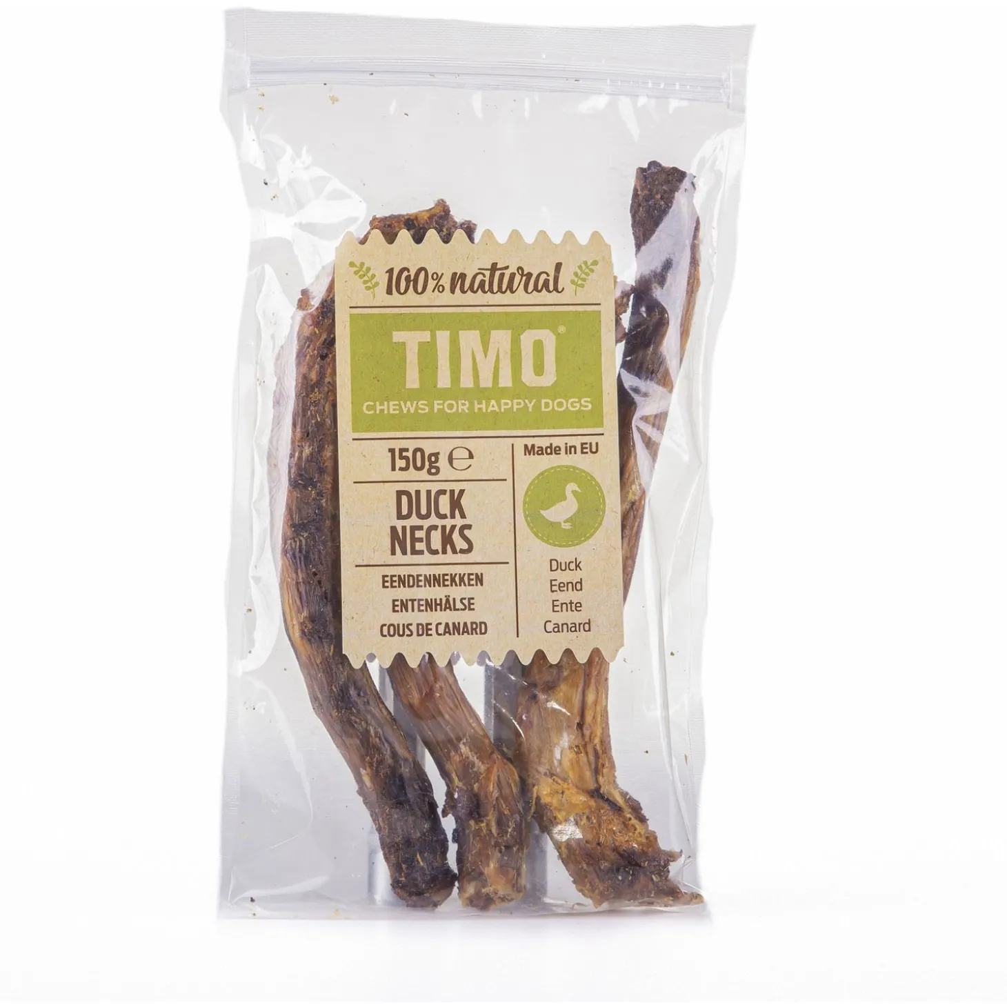 De Timo Eendennekken bevat 150 gram. Geschikt voor honden ouder dan 3 maand.