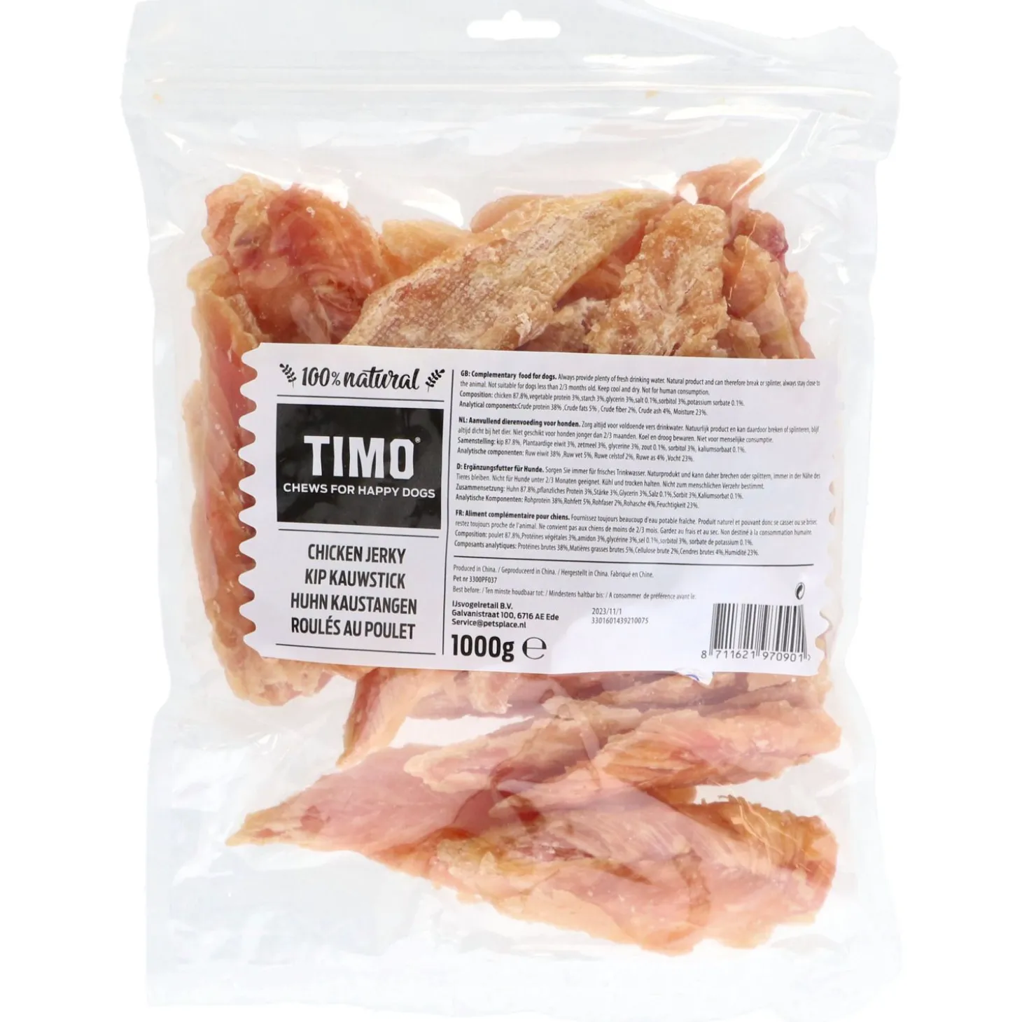 Wanneer je je hond wilt belonen, dan wil je hem natuurlijk voorzien van een snack die niet alleen lekker, maar ook gezond is. Laat je hond bijvoorbeeld knabbelen op de Timo Kip Kauwstrip, een 100% natuurlijk product, geproduceerd zonder conserveringsmiddelen of smaak- en kleurstoffen.