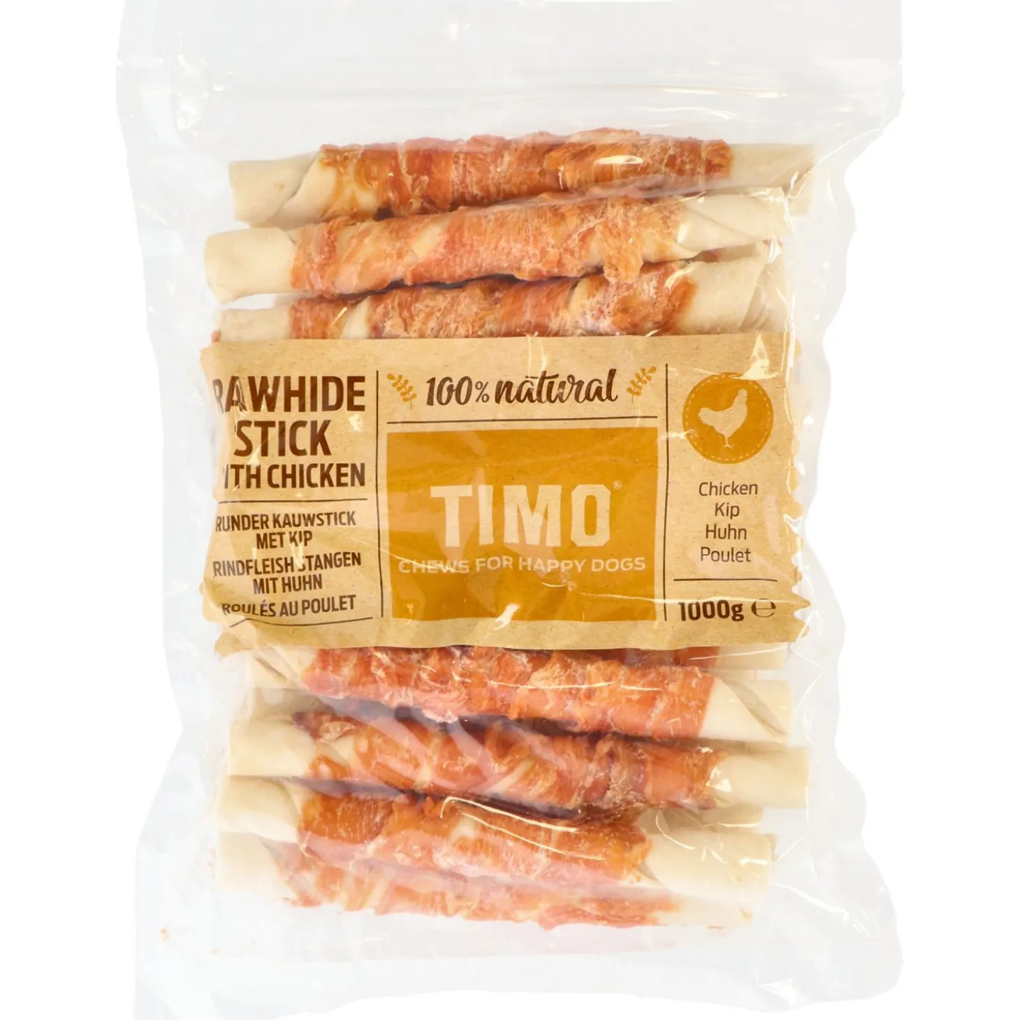 | Samenstelling | Kip 32%, ruwe huid 62%, zetmeel 2%, plantaardige eiwitten 2%, glycerine 1,8%, zout 0,1%, kaliumsorbaat 0,1% |