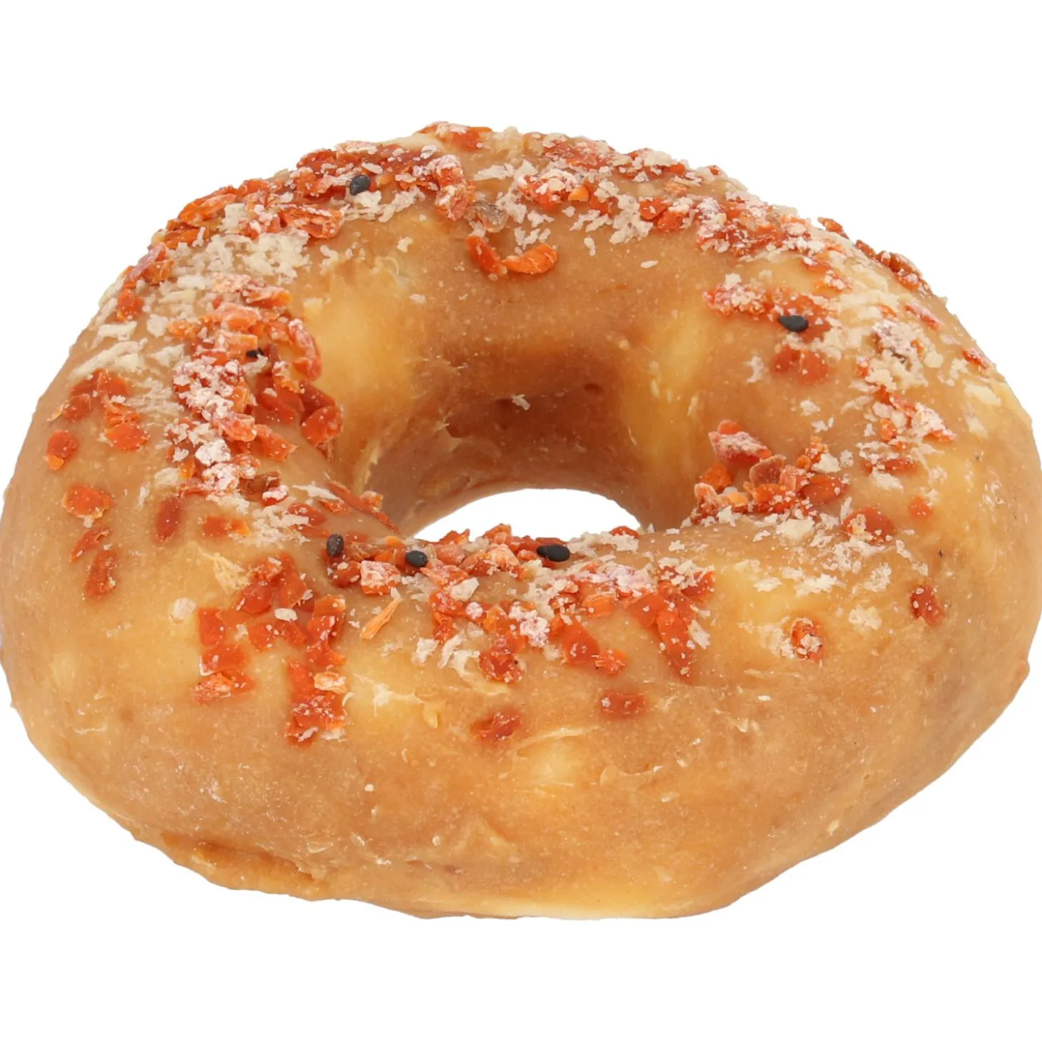 | Samenstelling | Kip 46%, Runderhuid 38%, Plantaardig Eiwit 3%, Bloemmeel 3%, Wortel 3.5%, Paneermeel 1.5%, Glycerine 3%, Sorbitol 1.6%, Zout 0.3%, Kaliumsorbaat 0.1% |