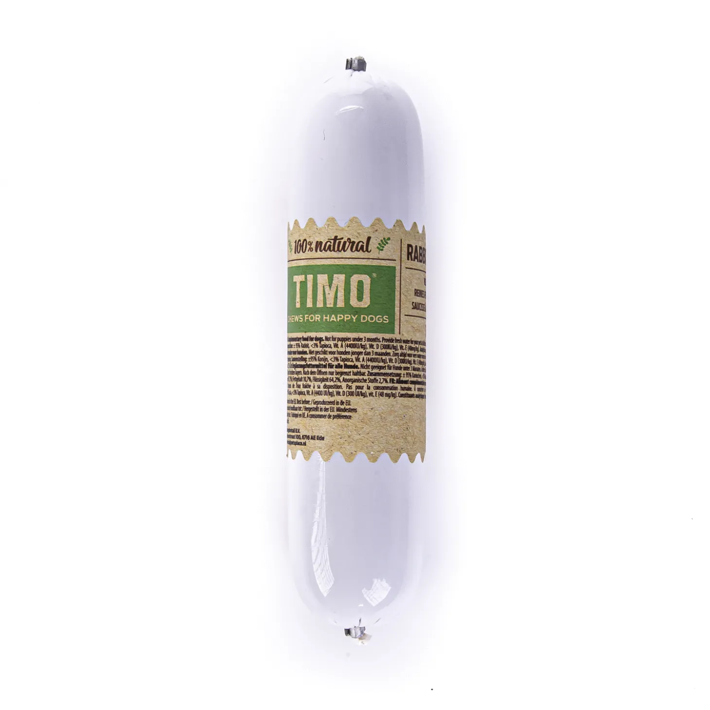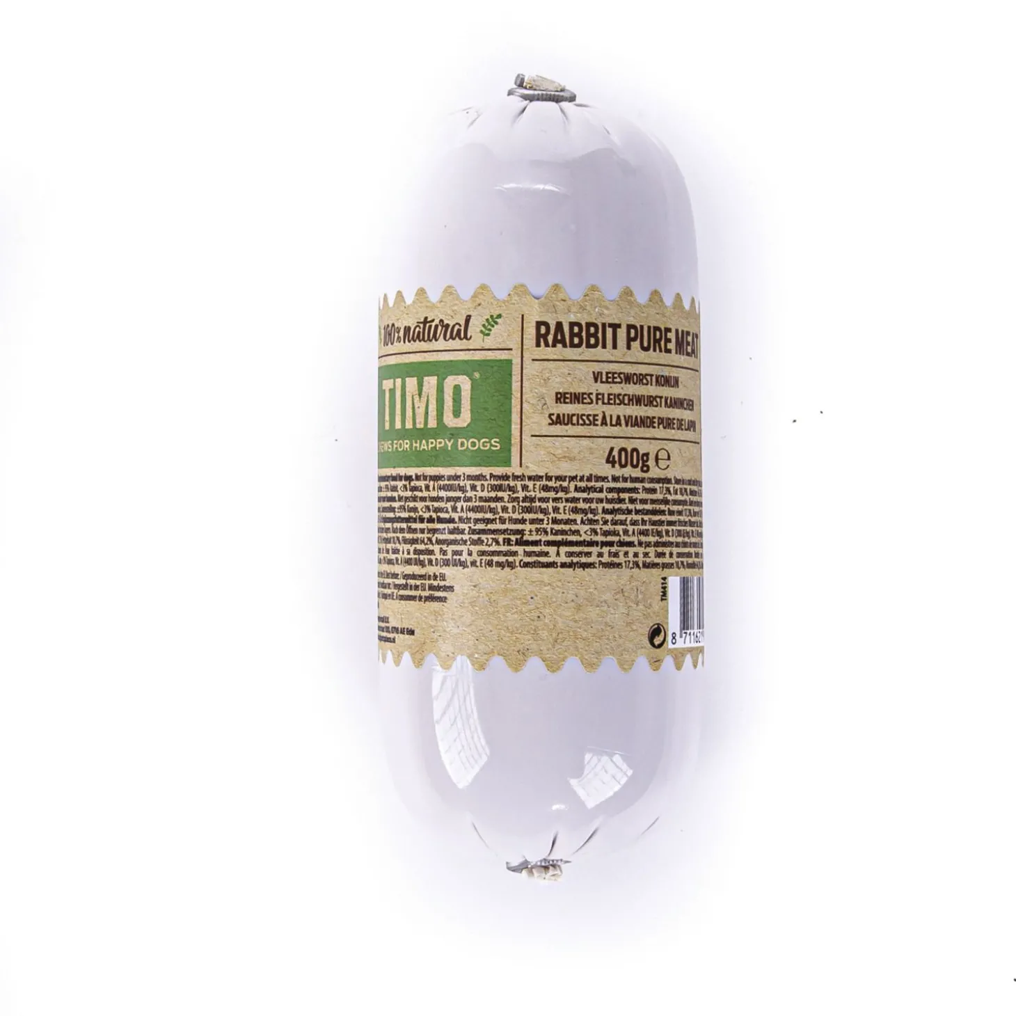 De Vleesworst Konijn van Timo is een zeer smakelijke worst voor je trouwe viervoeter. De worst is gemaakt van 100% konijn en bevat dus maar 1 unieke eiwitbron. Dit maakt de worst ideaal voor honden die gevoelig zijn voor bepaalde dierlijke eiwitten.