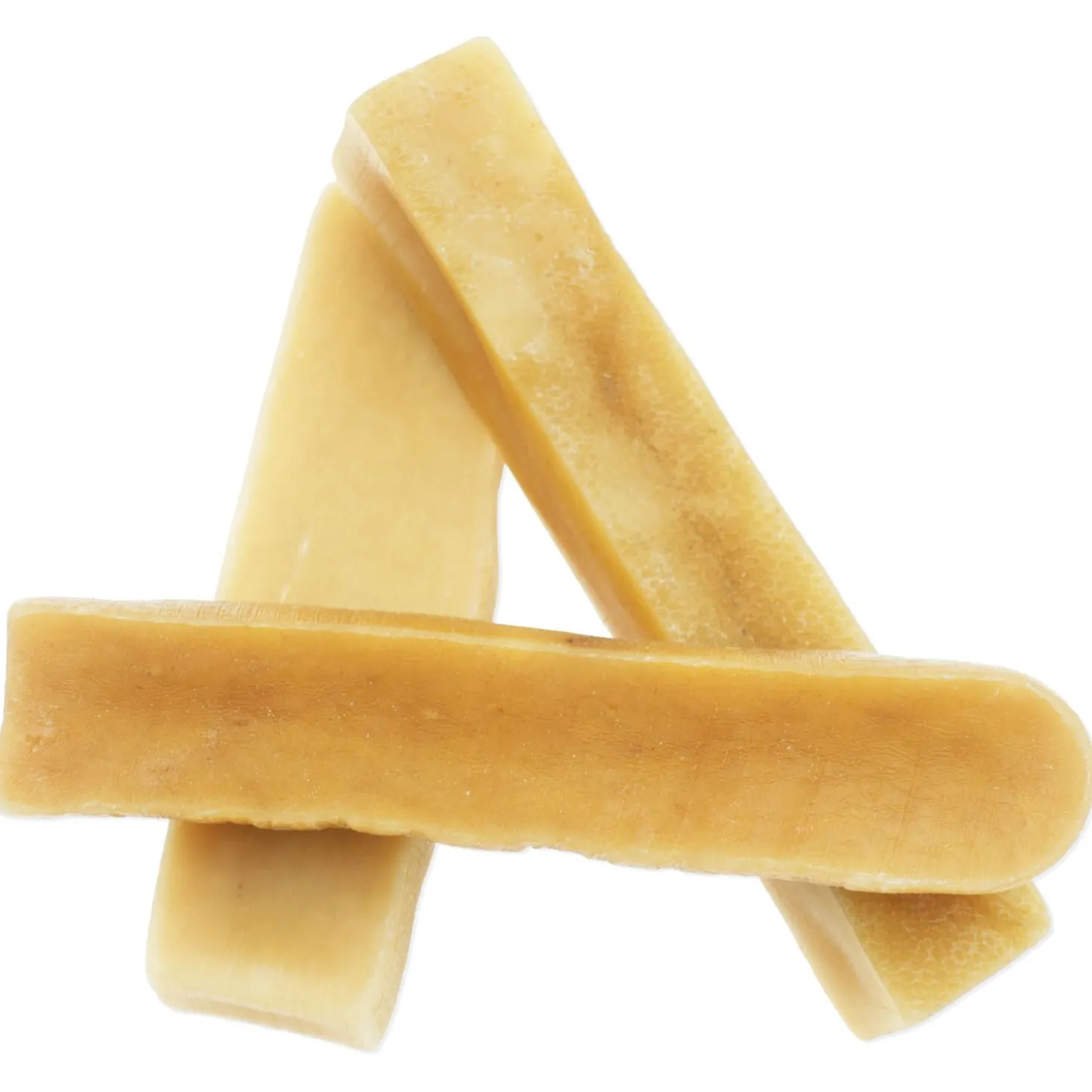 De harde structuur van de Timo Yakkaas helpt bij het verwijderen van tandplak en tandsteen, wat bijdraagt aan een betere mondgezondheid en frissere adem. Deze kauwsnack is bovendien rijk aan eiwitten en calcium, essentiële voedingsstoffen voor sterke spieren en botten. Doordat de yakkaas lactosevrij is, is deze snack ook geschikt voor honden met een gevoelige spijsvertering.
