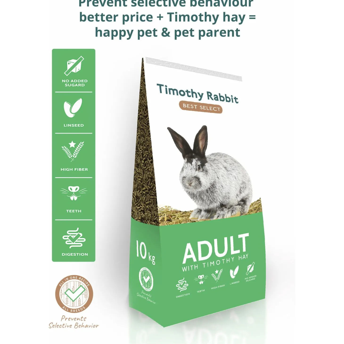 | Samenstelling | Luzerne, Zonnebloemcake, Maïs, Timothy hooi, Erwtenvezels, Haverzemelen, Zonnebloemolie, Lijnzaad, Peterselie, Mojave Yucca |