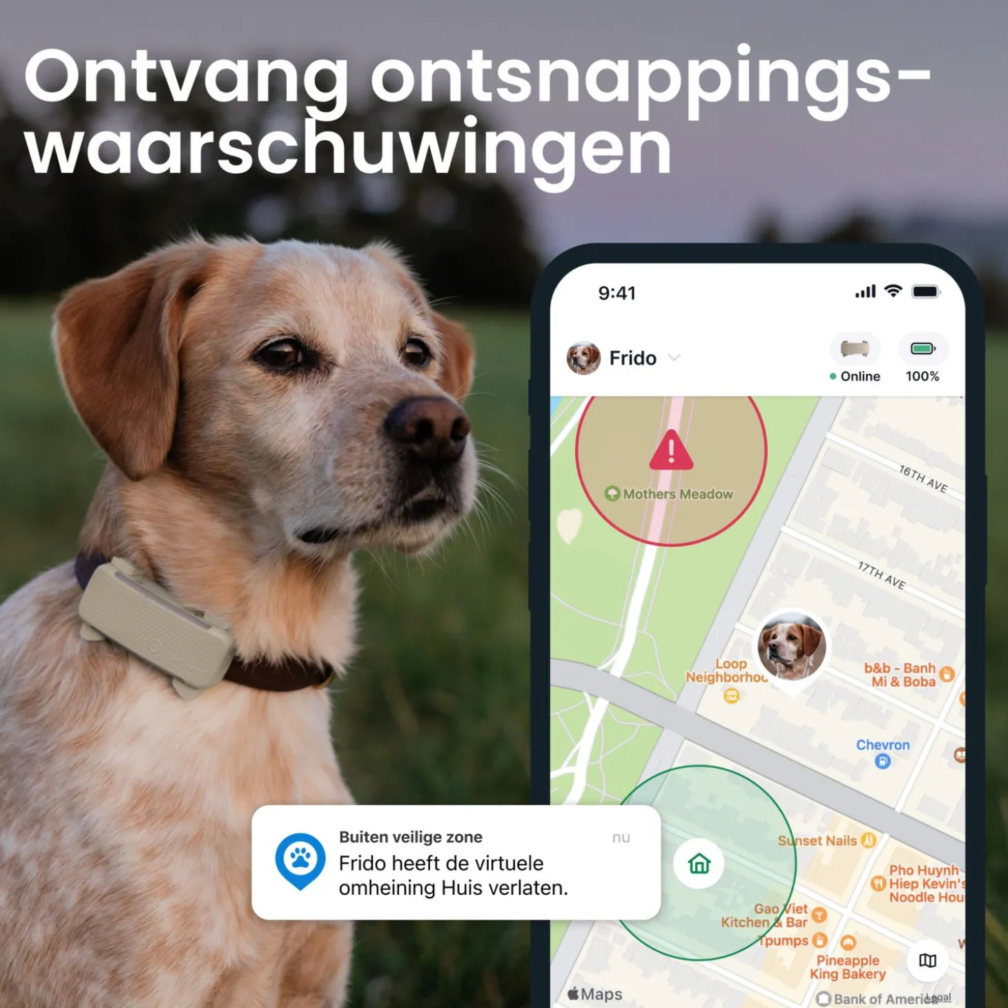 - Stel virtuele omheiningen in om direct een melding te krijgen als je hond een veilige zone verlaat