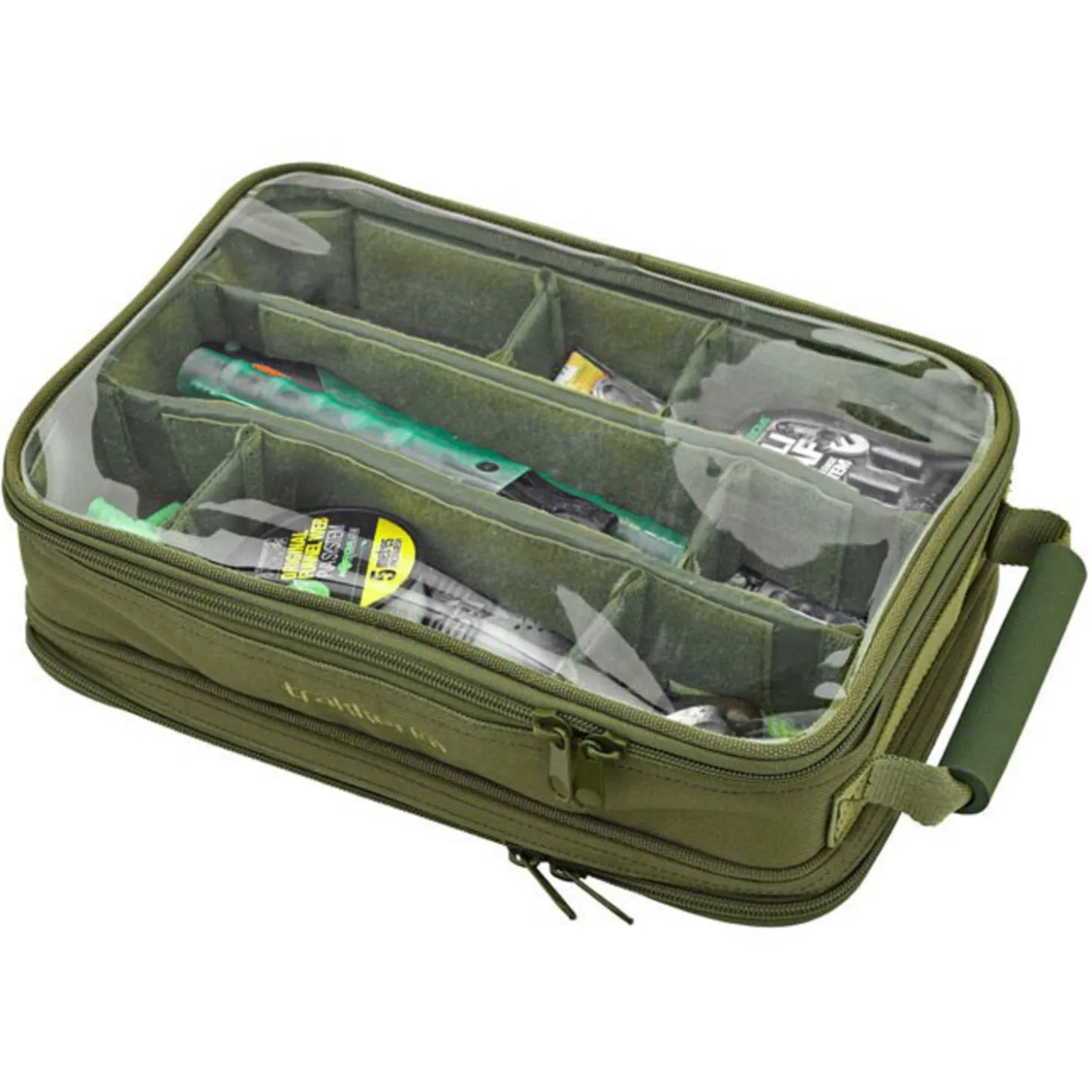 - Tackle/rig pouch met een helder PVC deksel