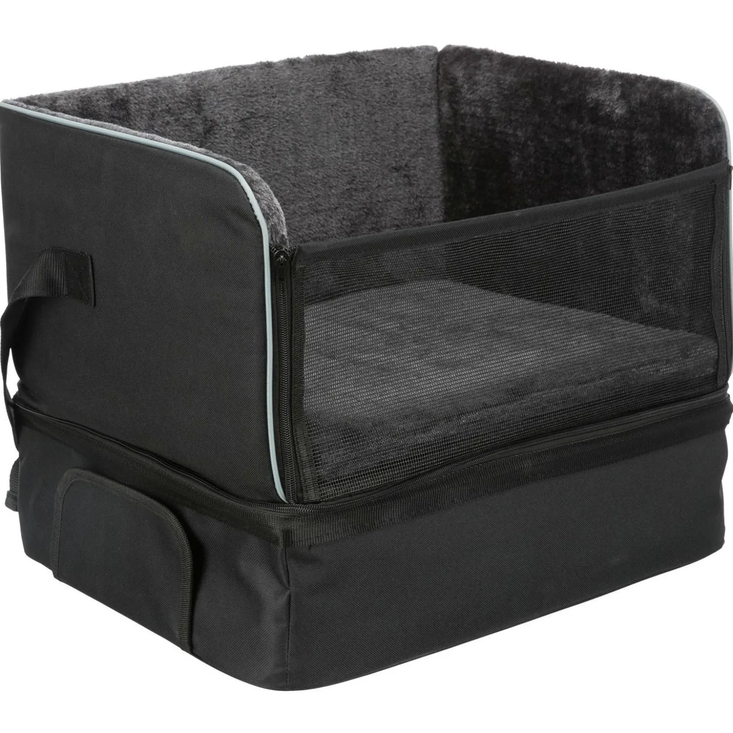Deze autostoel gemaakt van nylon en pluche is geschikt voor het vervoer van kleine honden tot 8kg in de auto. De stoel is heel stevig en vormvast. Onder de mand zit een opbergvak waar alle spulletjes voor de hond heel handig in opgeborgen kunnen worden. Dit opbergvak dient gelijk als zitverhoging zodat de hond naar buiten kan kijken. De binnenkant is zacht en comfortabel. Het zitgedeelte is afneembaar en wasbaar op 30 graden Celsius. In de autostoel zit een uitsparing voor de veiligheidsgordel.