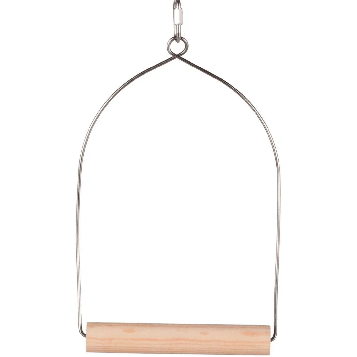 Met de Boogschommel van Trixie kan je de kooi verrijken. Deze schommel is een leuk extraatje om op te schommelen of gewoon om op te zitten. In de natuur zitten vogels namelijk veel op takjes die door de wind heen en weer bewegen. De boogschommel bootst deze bewegingen na. Dit maakt dat de schommel zorgt voor een goede evenwichtstraining voor je vogeltje. Je kan de schommel nog leuker maken door een sepia of snack ernaast op te hangen, zodat hij vanaf de schommel moet proberen te eten.