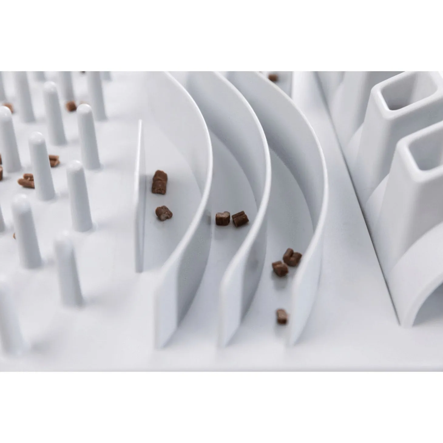 De vaardigheden van je kat worden op verschillende gebieden getraind met 5 verschillende modules, zoals een tunnel of bollen waaruit ze het lekkers moeten hengelen. Doordat het Fun Board zo veelzijdig is met verschillende moeilijkheidsgraden, is het ook ideaal voor oudere katten of binnenkatten. Al met al wordt je kat uitgedaagd, eet ze langzamer en eet ze minder, wat allemaal bijdraagt aan een gezonde spijsvertering en een goed gewicht.