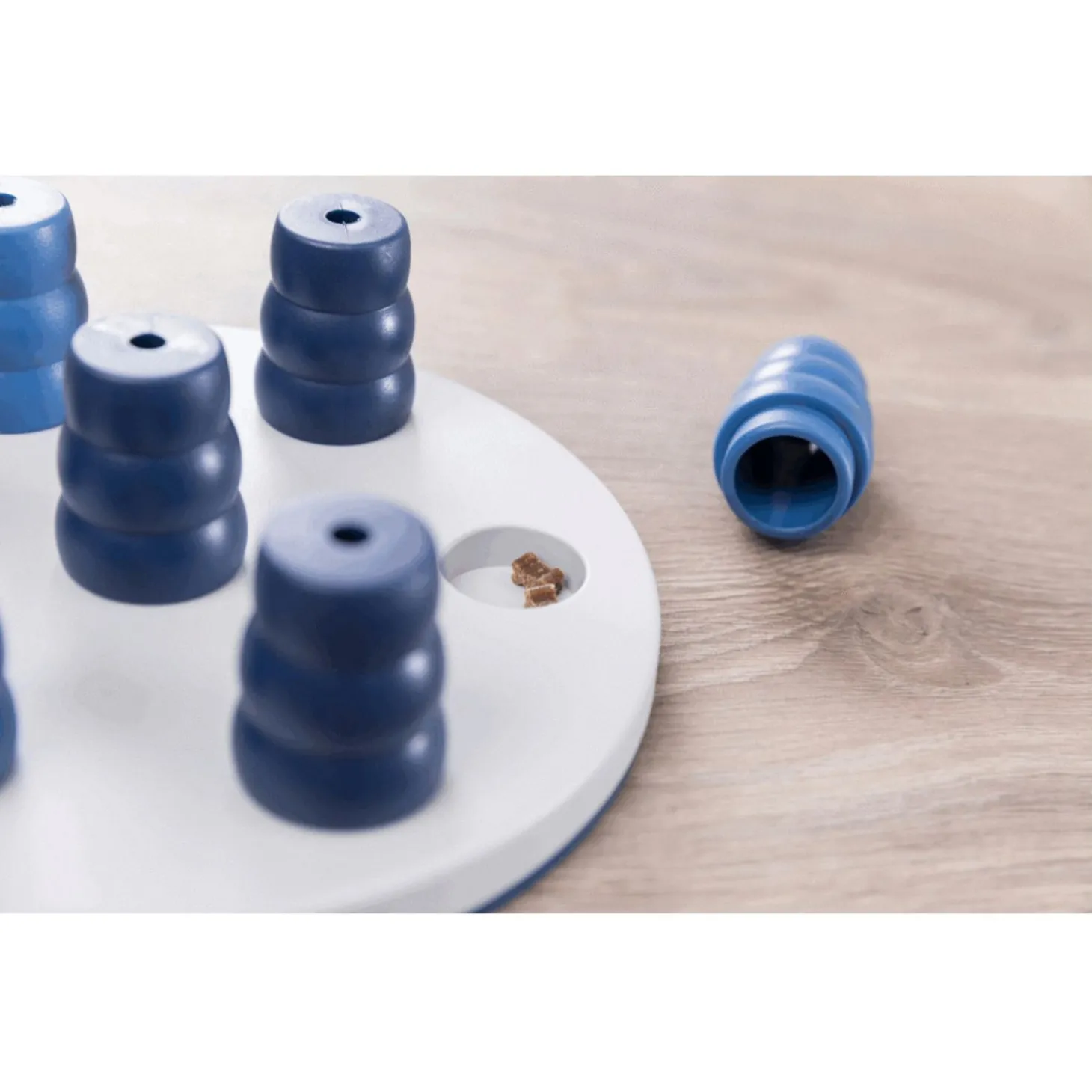 Het spel bestaat uit een bord met 7 kegels. Door de kegels op te tillen kan je hond bij zijn beloning komen, zoals de dagelijkse brokjes of heerlijke snoepjes. Al met al wordt je hond uitgedaagd, eet hij langzamer en eet hij minder, wat allemaal bijdraagt aan een gezonde spijsvertering en een goed gewicht.