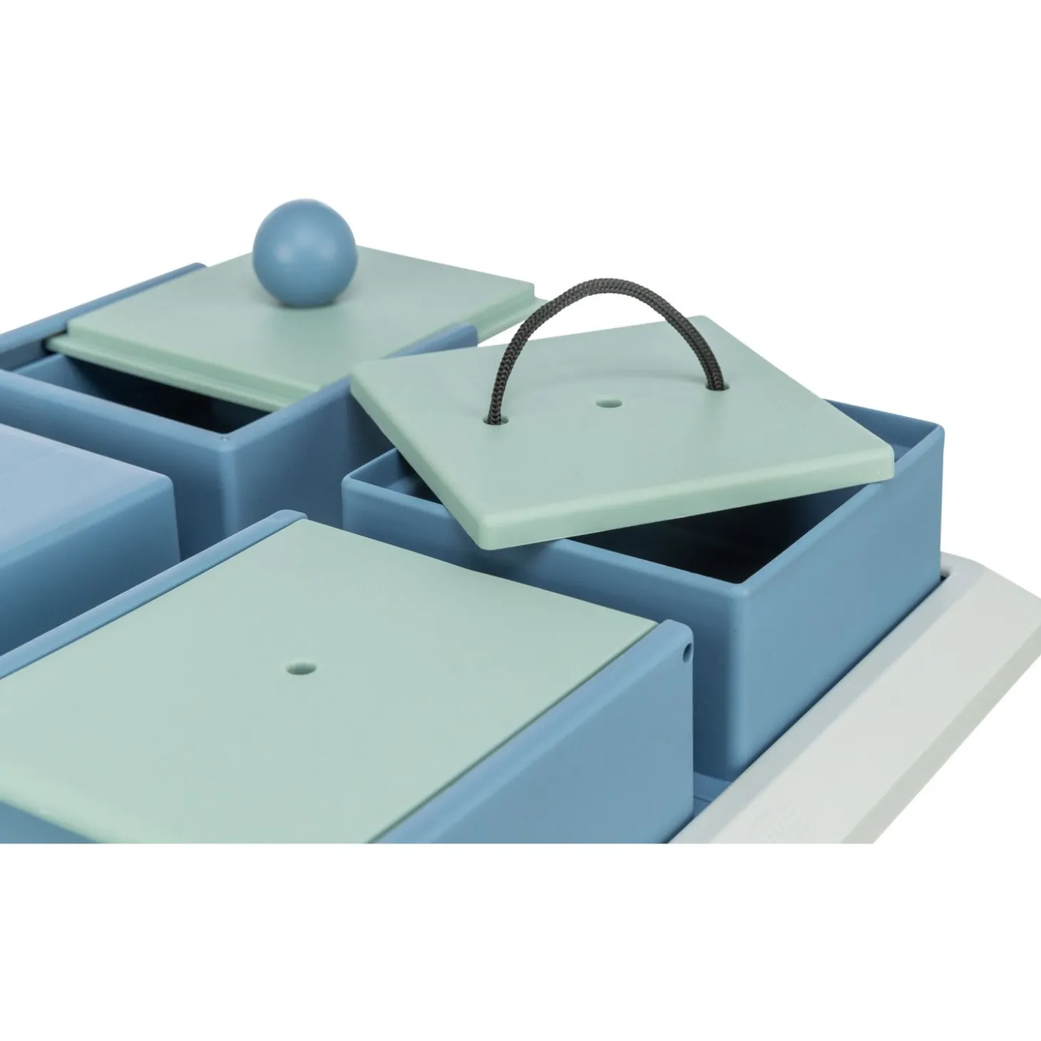 De Dog Activity Poker Box 1 is wit met blauw van kleur en is 31 x 31 cm groot.