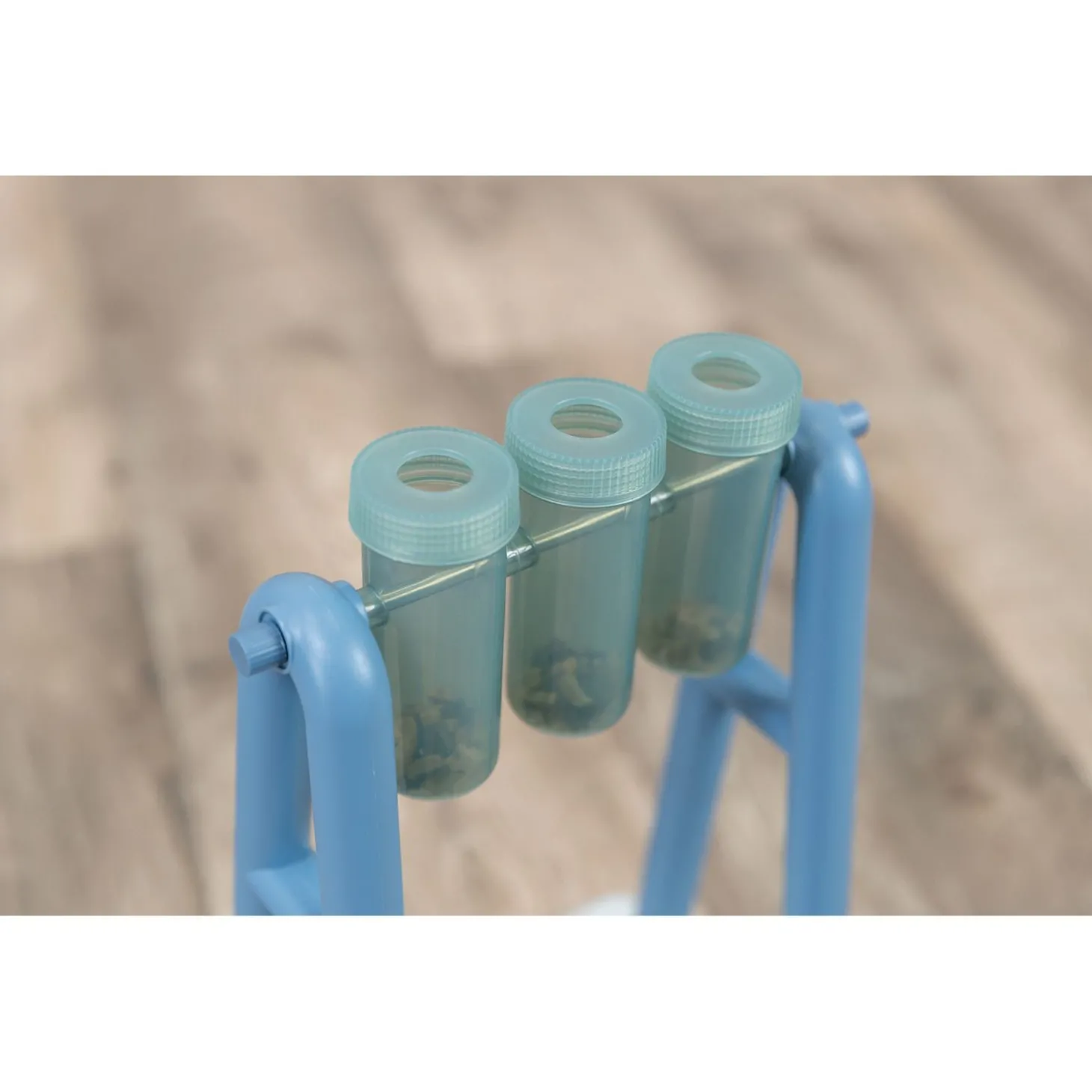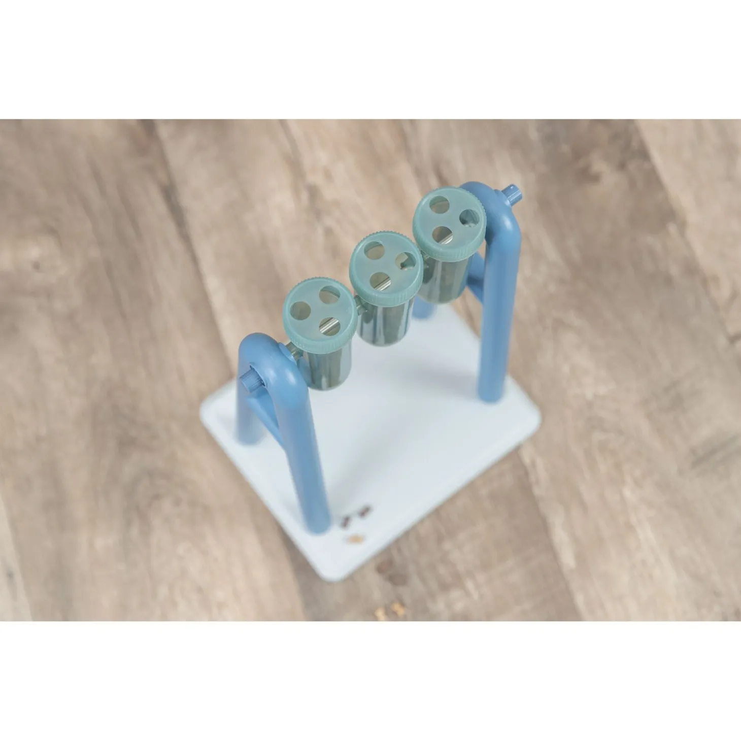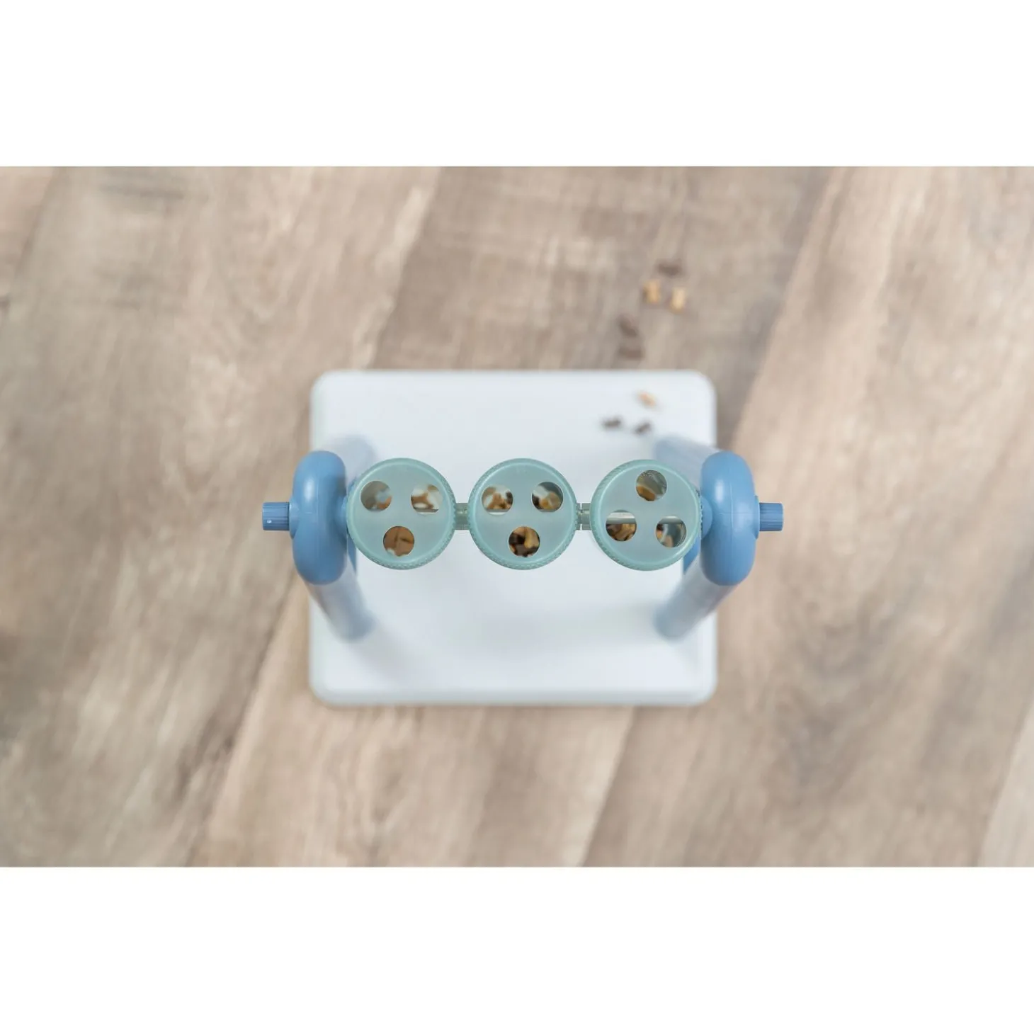 Het spel bestaat uit een standaard met 3 draaibare elementen met elk 2 deksels. Door de gevulde potjes om te draaien kan je hond bij zijn beloning komen, zoals de dagelijkse brokjes of heerlijke snoepjes. Al met al wordt je hond uitgedaagd, eet hij langzamer en eet hij minder, wat allemaal bijdraagt aan een gezonde spijsvertering en een goed gewicht.