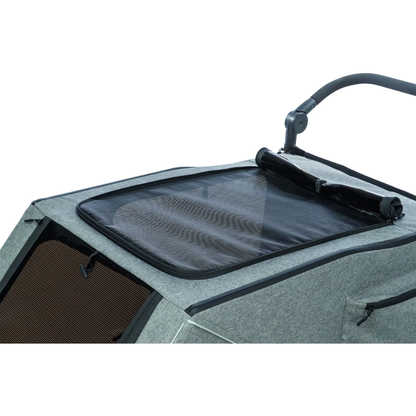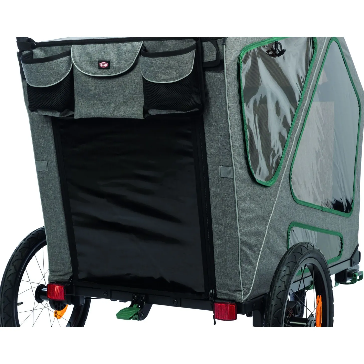 De gaas-inzetstukken van de fietskar zijn voorzien van regenbescherming die afgedekt kan worden wanneer het niet regent. Dit zorgt voor voldoende ventilatie en frisse lucht voor je hond tijdens de rit. De fietskar heeft ook diverse vakken en een bekerhouder, zodat je wat spullen kunt meenemen tijdens de rit. De vastzetrem zorgt ervoor dat de fietskar op zijn plaats blijft staan wanneer je stopt. Verder heeft de fietskar een geïntegreerde korthouder, zodat je hond veilig op zijn plaats blijft zitten tijdens de rit. De duwstang is in hoogte verstelbaar, waardoor je hem gemakkelijk kunt aanpassen aan je eigen lengte. De fietskar heeft ook lussen voor het bevestigen van een achterlicht en reflectoren, zodat je goed zichtbaar bent op de weg. De veiligheidsvlag met reflecterend werkje erin zorgt ervoor dat je nog beter opvalt.