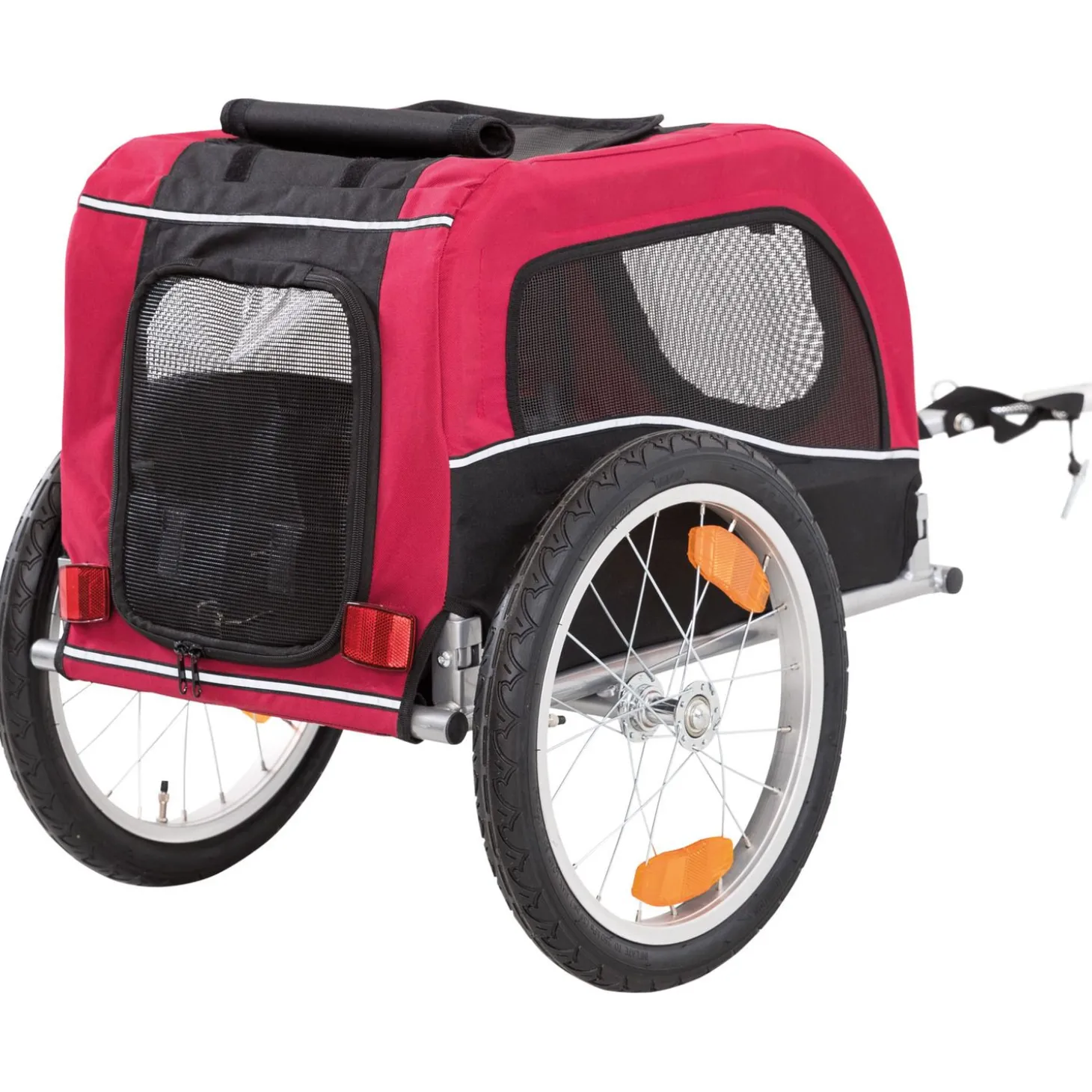 Met zijn geavanceerde wielen uitgerust met een snelbevestigingssysteem, maakt de Trixie Fietskar het eenvoudig om de kar aan en af te koppelen van je fiets. De fietskar is voorzien van zowel een voor- als achterdeur, waardoor het moeiteloos in- en uitstappen is voor je harige vriend.