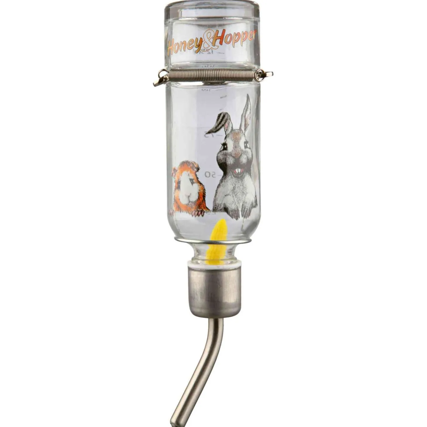 De Trixie Honey & Hopper Drinkfles voorziet jouw konijn of knaagdier van een fijne drinkfles. De fles – met vrolijke opdruk – heeft een roestvrijstalen sluitkap en is voorzien van een bijtvaste, metalen drinktuit. Dankzij het drijvertje zie je in een oogopslag hoeveel water er nog in zit.