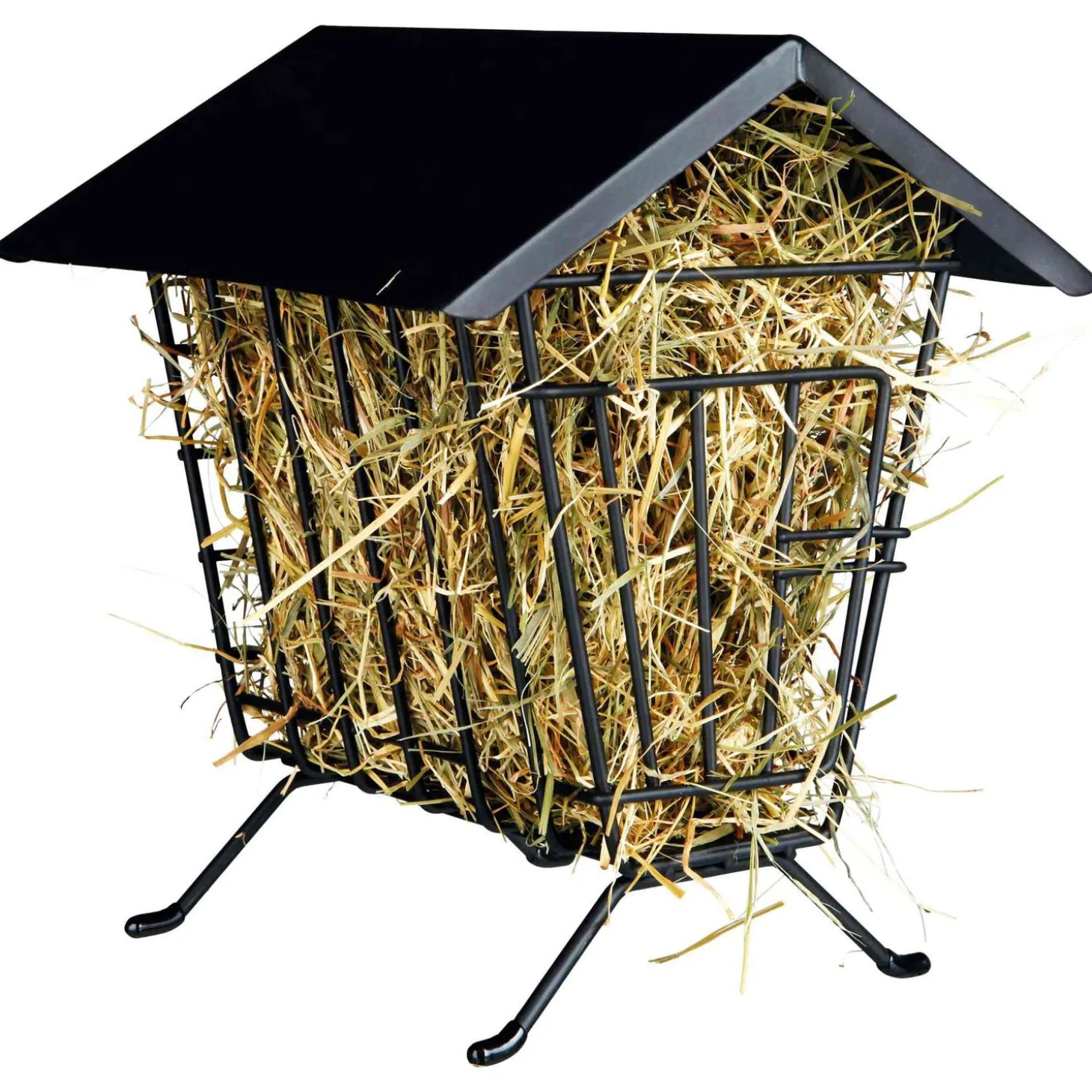 De hooiruif beschikt ook over een dak. Deze heeft verschillende functies. Zo kan jouw konijn of knaagdier niet in de hooiruif klimmen wat veilig en hygiënisch is. Daarnaast kan het dak gemakkelijk geopend worden waardoor het aanvullen van het hooi gemakkelijk is voor jou als baasje.