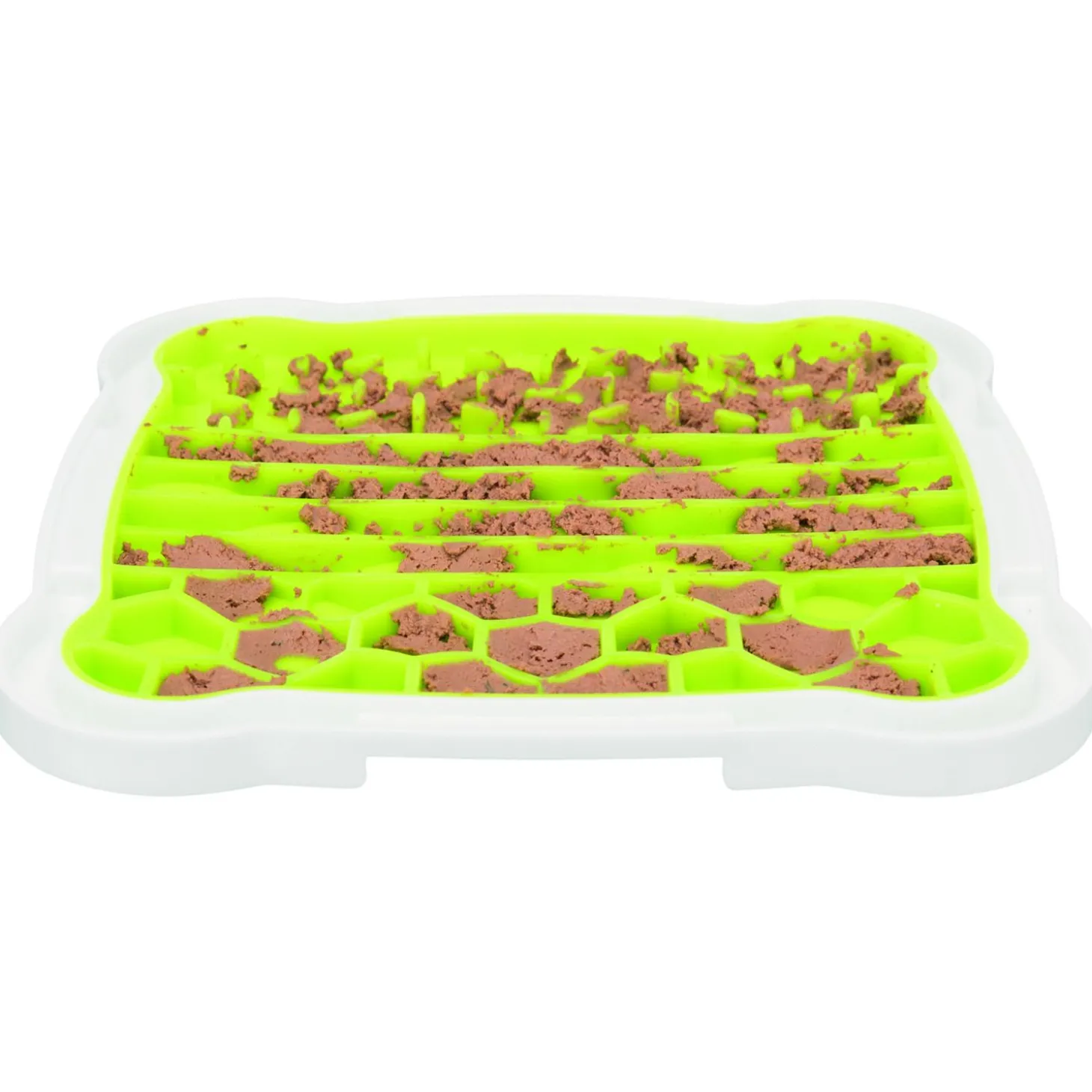 Voor extra lang lik plezier kun je het natvoer op de likplaat smeren en daarna invriezen. Hierdoor is je hond nog langer bezig om al het lekkers van de likplaat af te likken.