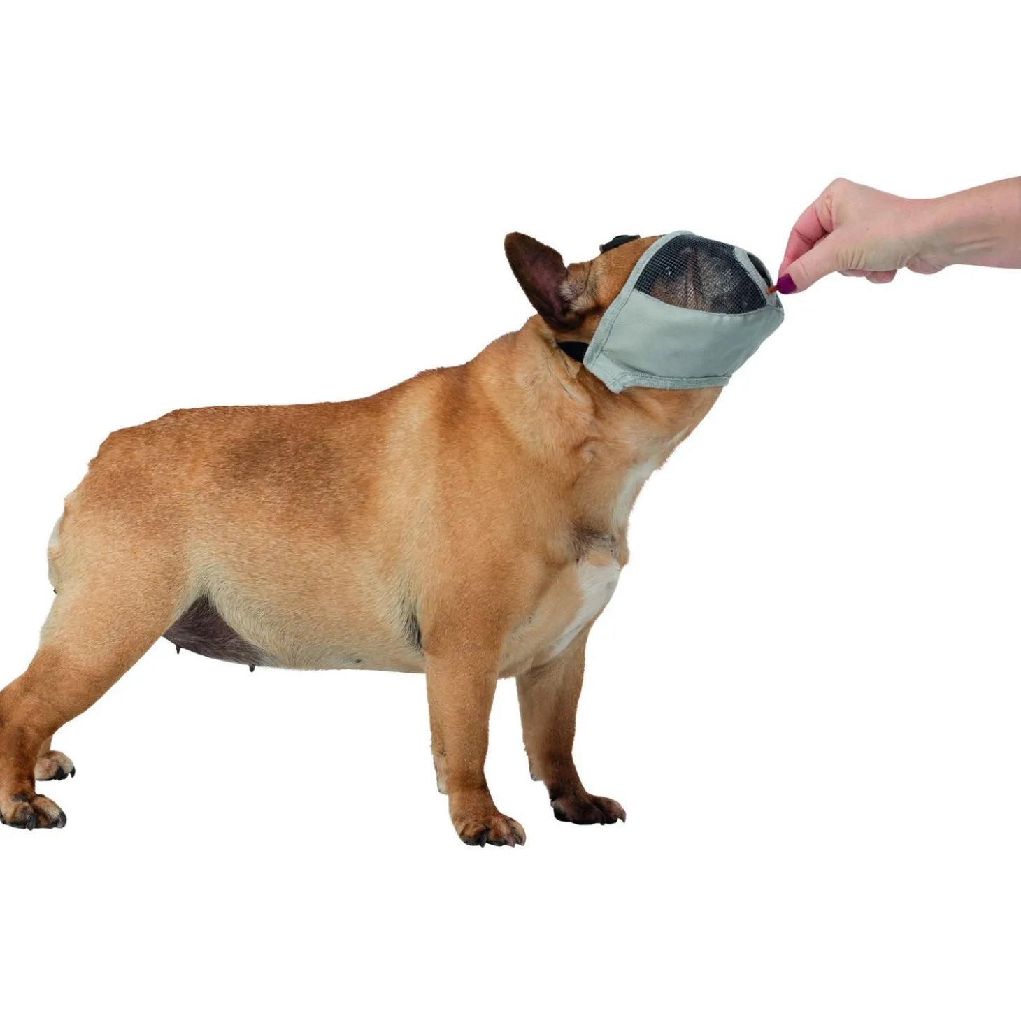 De Muilkorf van Trixie is grijs van kleur en is te verkrijgen in de volgende maten: