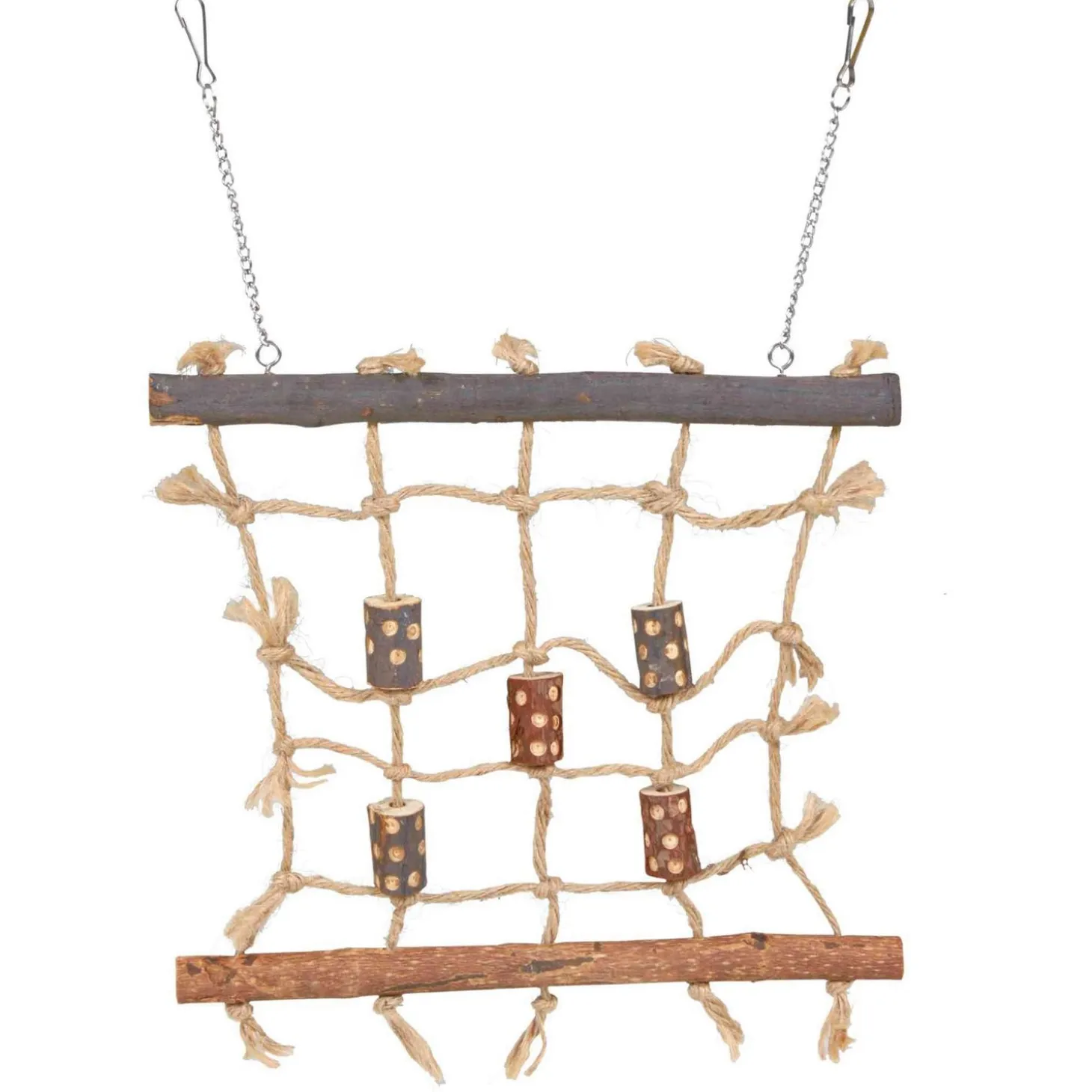 Let op: vogels staan erom bekend dat ze hun omgeving verkennen en onderzoeken met hun snavels. Dit natuurlijke gedrag wordt vaak versterkt in gevangenschap, waar ze de neiging hebben om aan verschillende objecten en oppervlakken te knabbelen. Hierdoor kunnen onderdelen breken of loslaten, waardoor een vogel vast kan blijven zitten of zich open kan halen. Touw kan slijtage vertonen of loslaten, waardoor vogels verstrikt kunnen raken of het in de krop terecht komt. Door regelmatig de accessoires in de kooi te controleren, kan je ervoor zorgen dat jouw vogel een veilige en stimulerende omgeving heeft waarin hij/zij vrij kan bewegen zonder onnodige bedreigingen.