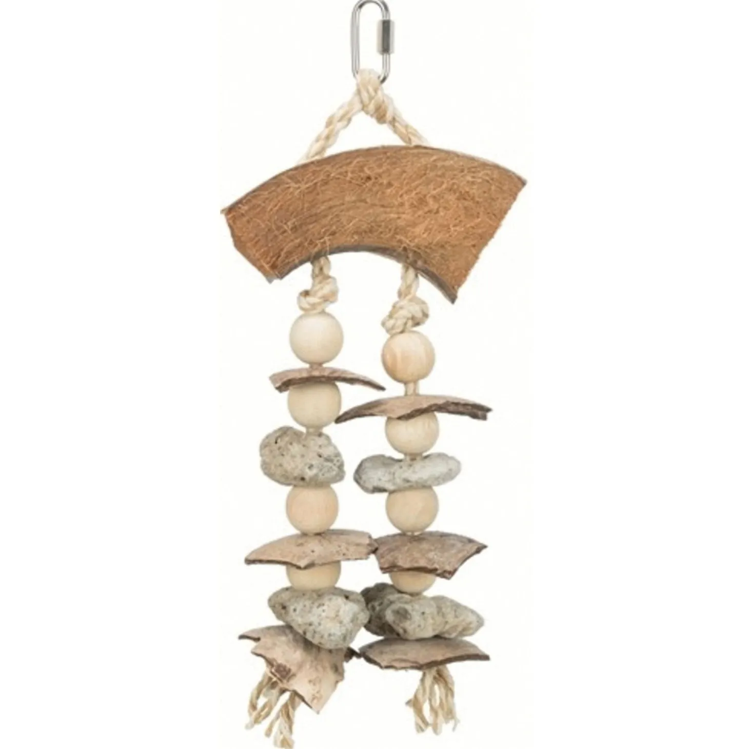 Het Trixie Natuurspeelgoed voor vogels kokosnoot/schelp is een natuurlijk speelgoed voor vogels. Dit vogelspeelgoed van Trixie is ideaal om slopen en verveling tegen te gaan. Dit vogelspeelgoed is geheel gemaakt van natuurlijke materialen. Vogels zijn gek op slopen en met dit speelgoed kan dat veilig! Daarnaast helpt dit sloopspeelgoed de snavel in conditie te houden. Het speelgoed is ontwikkeld in samenwerking met Weltvogelpark Walsrode.