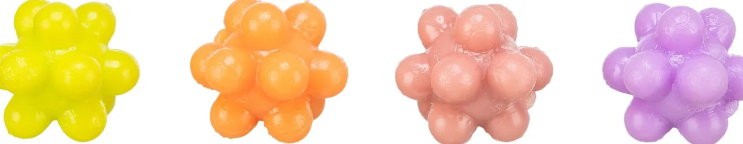 Deze rubberen speelballetjes hebben de vorm van een atoom. Door deze vorm en structuur stuiteren de balletjes alle kanten op. Je kat moet dus extra goed opletten waar het balletje heen zal gaan zodat ze mentaal en fysiek wordt uitgedaagd.