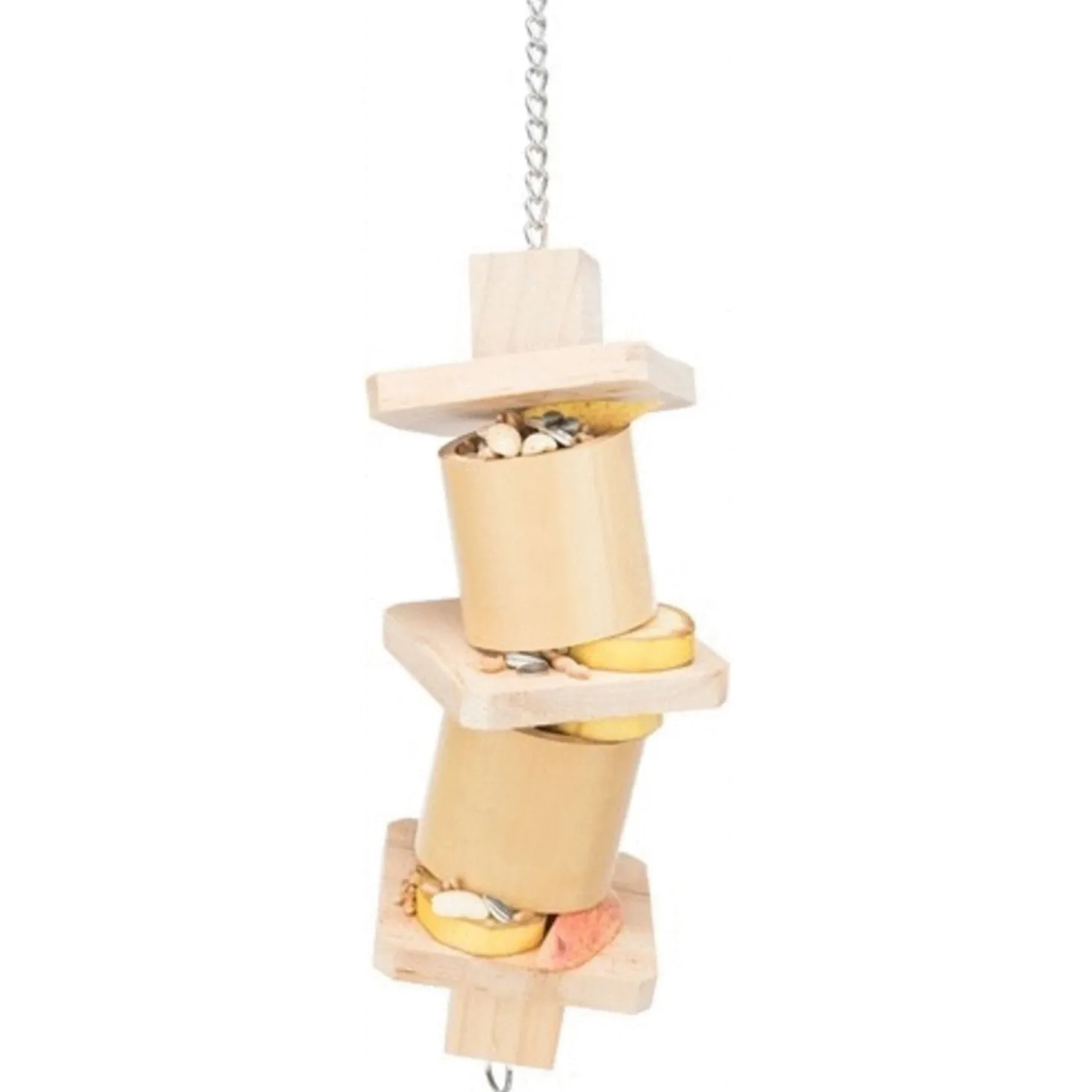Het Trixie snack speelgoed bamboe/hout naturel van 19,5x27cm is vogelspeelgoed van natuurlijk materiaal. Dit vogelspeelgoed is ideaal om met beloningssnoepjes te vullen om verveling tegen te gaan. Het vogelspeelgoed is gemaakt van bamboehulzen met hout ertussen waar de vogelsnacks of het vogelvoer in verstopt kunnen worden. Hierdoor ga je verveling bij je vogels tegen en wordt het natuurlijke foerageren gestimuleerd. Ontwikkeld in samenwerking met wereldvogelpark Walsrode!