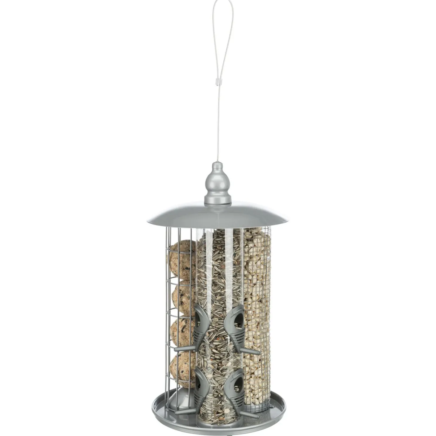 Voorzie de vogels in je tuin van allerlei soorten eten met het Voederstation 3-in-1 van Trixie. Het voederstation is gemaakt van gepoedercoat metaal en kunststof. Dit station heeft 3 voedercompartimenten waar je je tuinvogels verschillende lekkernijen mee kunt aanbieden, namelijk: