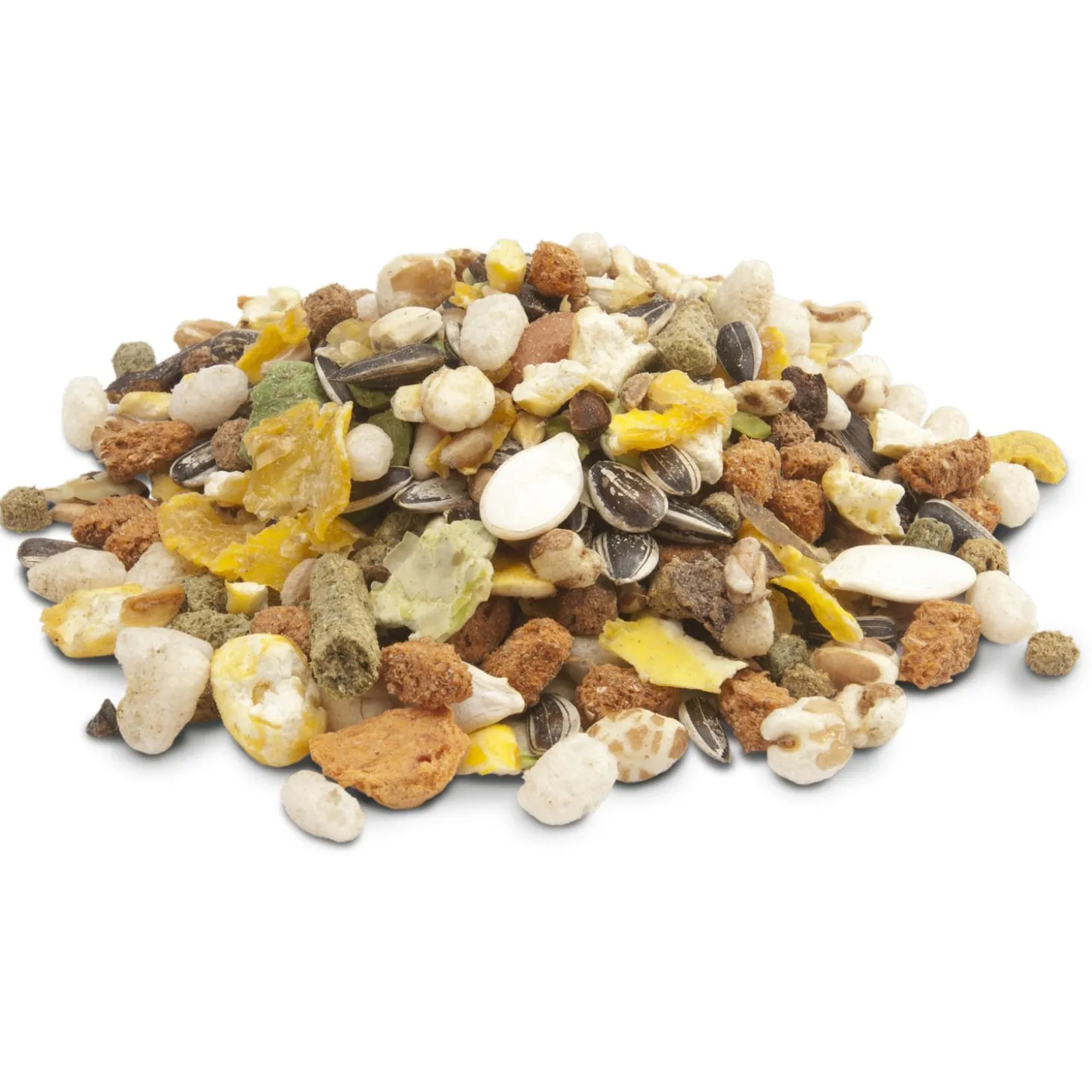 | Samenstelling | granen (40%) | plantaardige bijproducten | groenten | zaden | noten | vruchten | plantaardige eiwitextracten | mineralen | oliën en vetten | suiker |