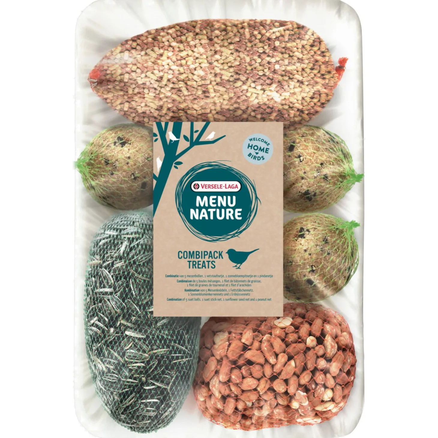 | Analyse | mezenbollen: eiwit 9,5% | vetgehalte 24,0% | ruwe as 3,5% | ruwe celstof 3,0%vetstaafjes: eiwit 6,5% | vetgehalte 20% | ruwe as 3,5% | ruwe celstof 2% zonnebloempitten: eiwit 14,9% | vetgehalte 34,0% | ruwe as 3,1% | ruwe celstof 26,9% pinda’s: eiwit 24,7% | vetgehalte 40,6% | ruwe as 2,4% | ruwe celstof 3,7% |
