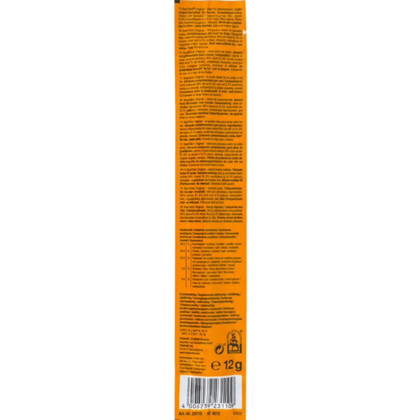 Pure verwennerij zijn de Beefsticks van Vitakraft. Door de specifiek gekozen ingrediënten die allen van topkwaliteit zijn, de verrukkelijke geuren het zeer hoge vleesgehalte en de unieke smaak bouwt je hond direct een feestje. De Beefstick heeft een suikervrij receptuur en bevat geen kleurstoffen of smaakversterkers. Ze zijn gewoon écht lekker!