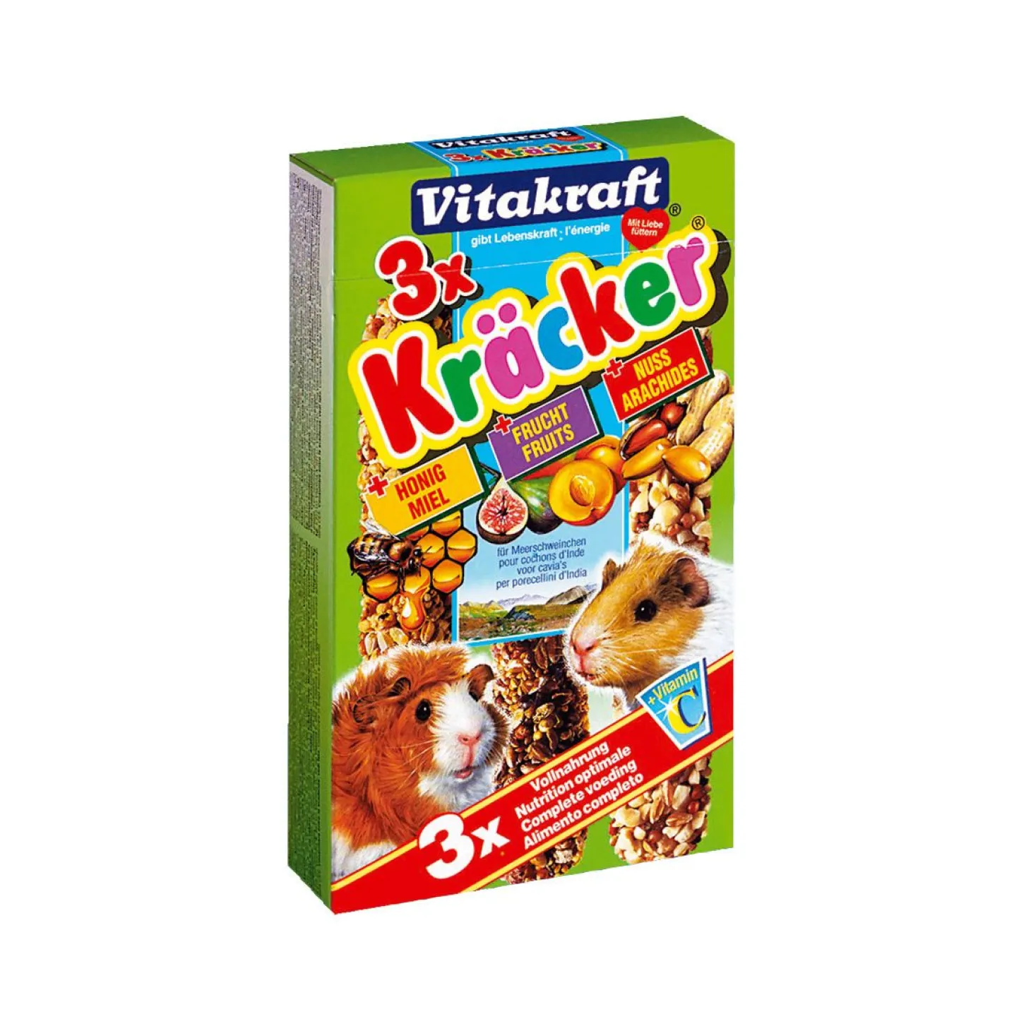 De smaakvolle Cavia Krackers van Vitakraft zijn onmisbaar in het verblijf van je Cavia’s. Een verantwoorde snack op basis van verschillende natuurlijke ingrediënten. De krackers zitten boordevol belangrijke vitaminen en mineralen en zijn bereid zonder toegevoegde suikers. De heerlijke stukjes fruit en andere lekkernijen zijn bevestigd op een natuurlijk knabbelhoutje. De kracker is gemakkelijk te bevestigen door de handige cliphouder.