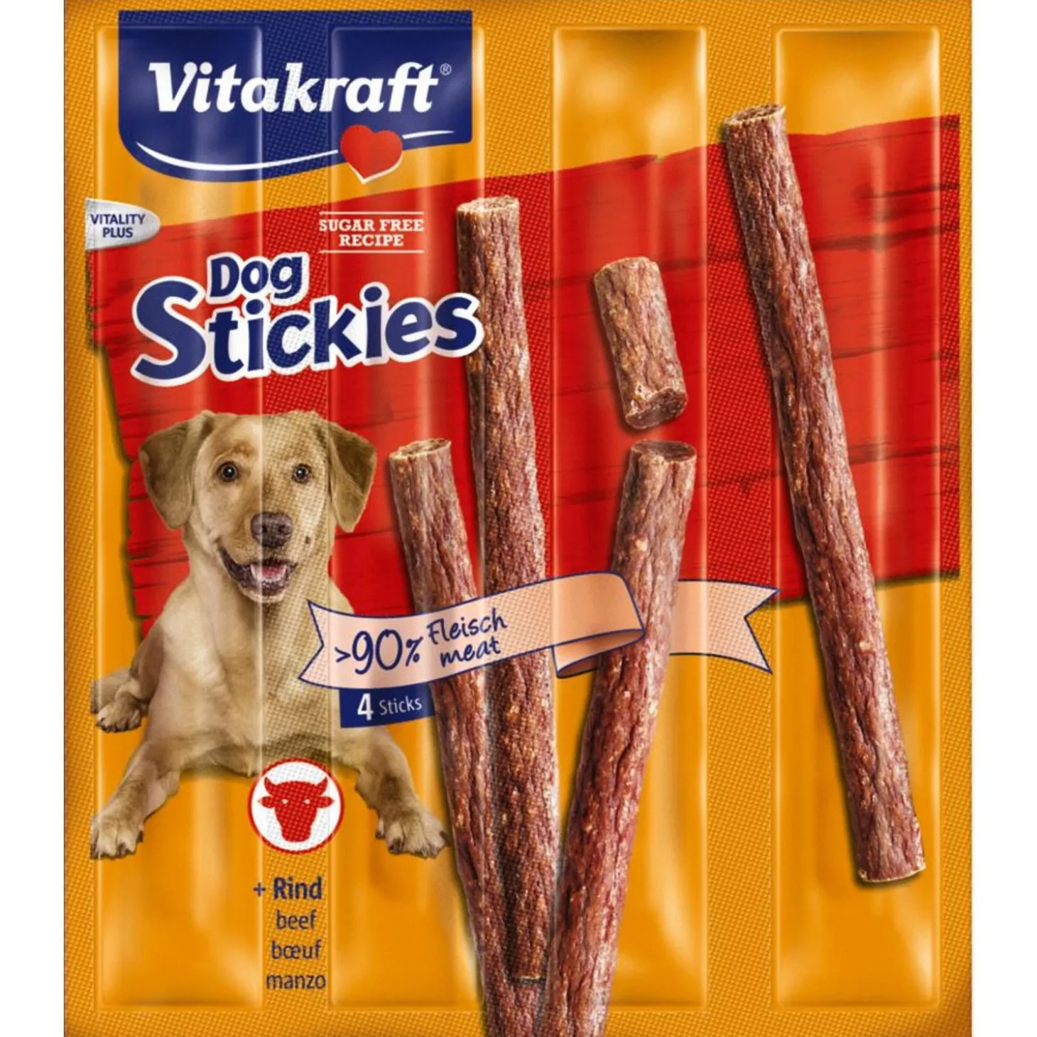 Dog Stickies van Vitakraft is verpakt per 4 stuks in de smaken gevogelte en rund
