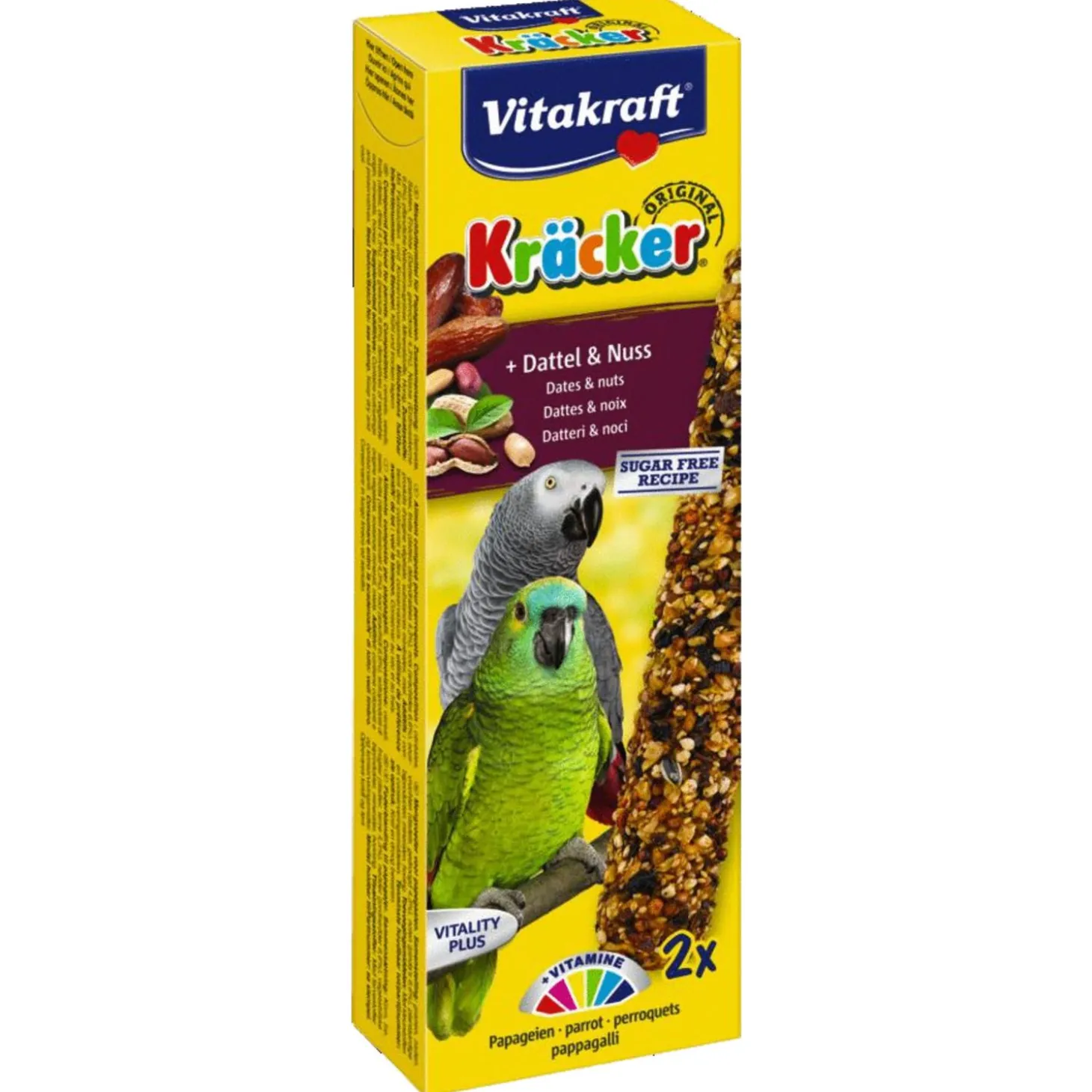 Papegaai Kracker Amazonia is verpakt per 2 stuks in de smaak dadel en noot