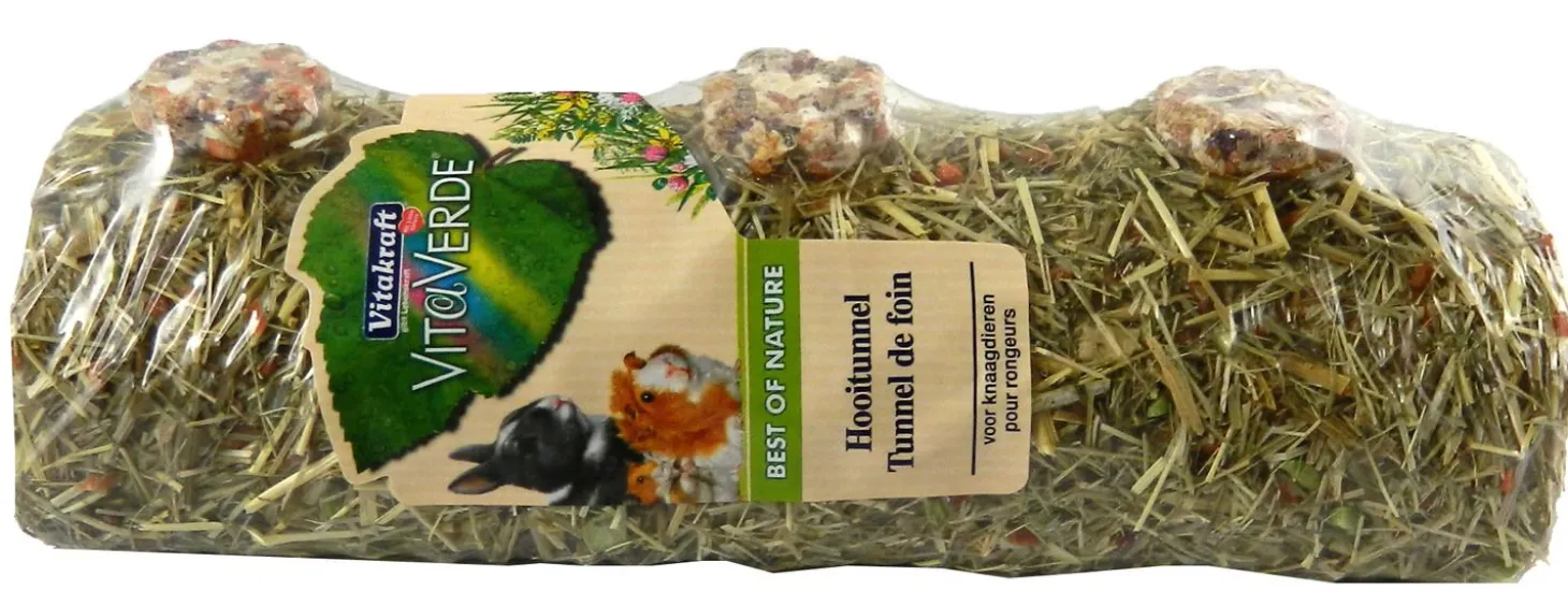 Onze konijn en knaagdieren vinden het heerlijk om bezig te zijn. Als ze ergens hun tanden in kunnen zetten is het al goed; maar als ze er ook nog in kunnen verstoppen dan is het feest helemaal compleet! De smakelijke Vita Verde Hooitunnel van Vitakraft is bedekt met smaakvol hooi en verrijkt met verrukkelijke stukjes wortel.